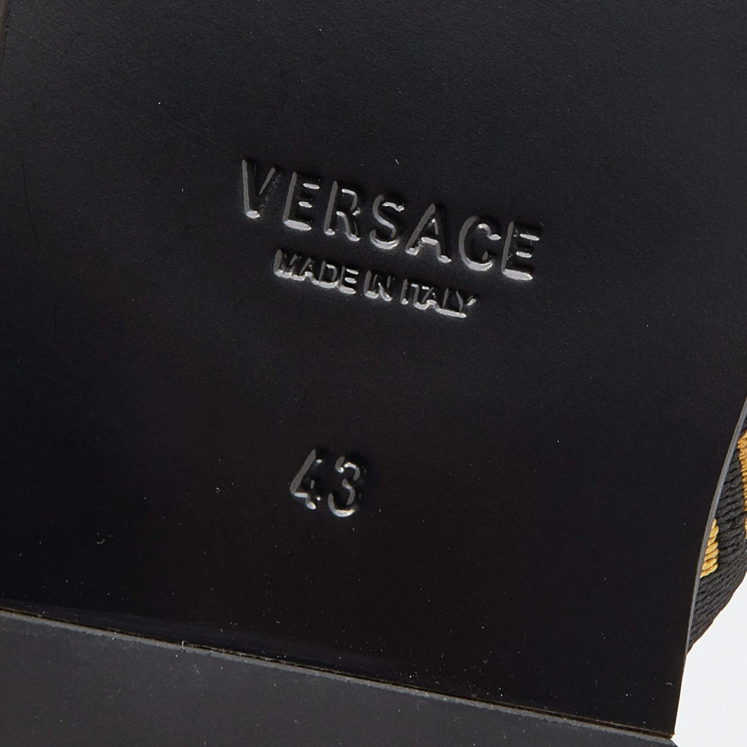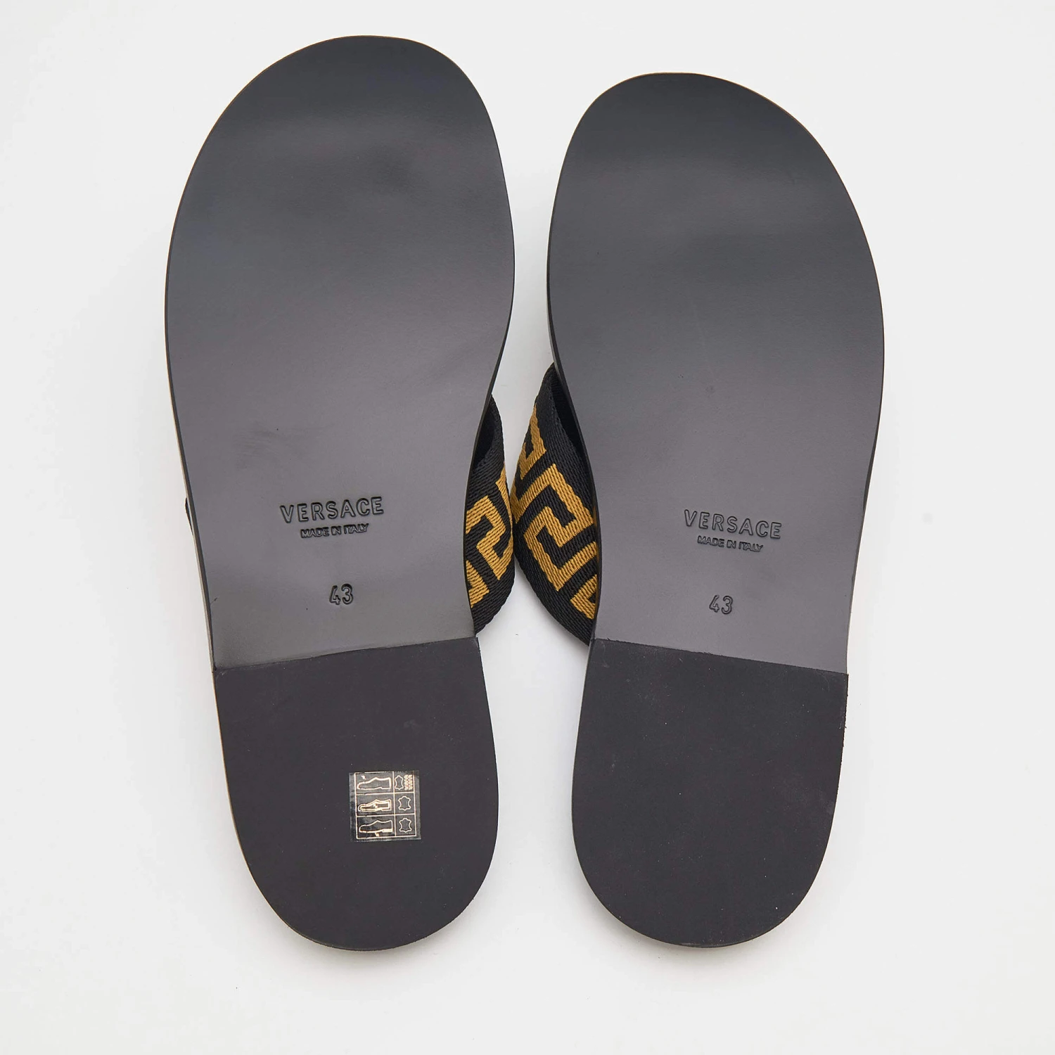 Versace Black/Yellow Leather And Fabric Greca Flat Slide Sandals Size 43 For Men - Image 9