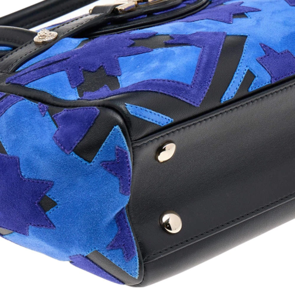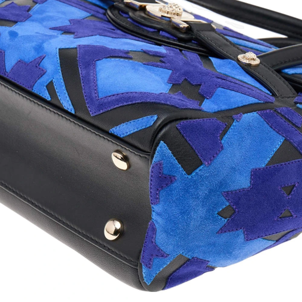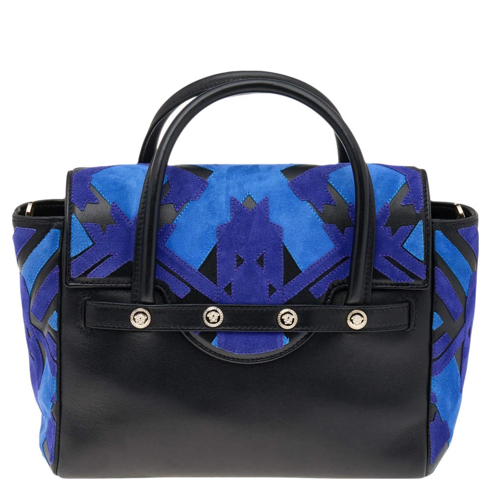 The black leather exterior of the Versace bag is layered with suede patches to achieve a winning end result. The flap easily lifts to give access to your everyday essentials and the dual handles allow the bag to be carried in your hand or in the hook of your arm.
