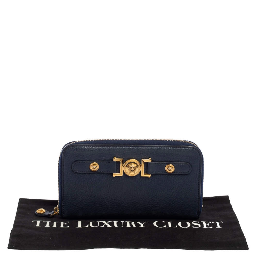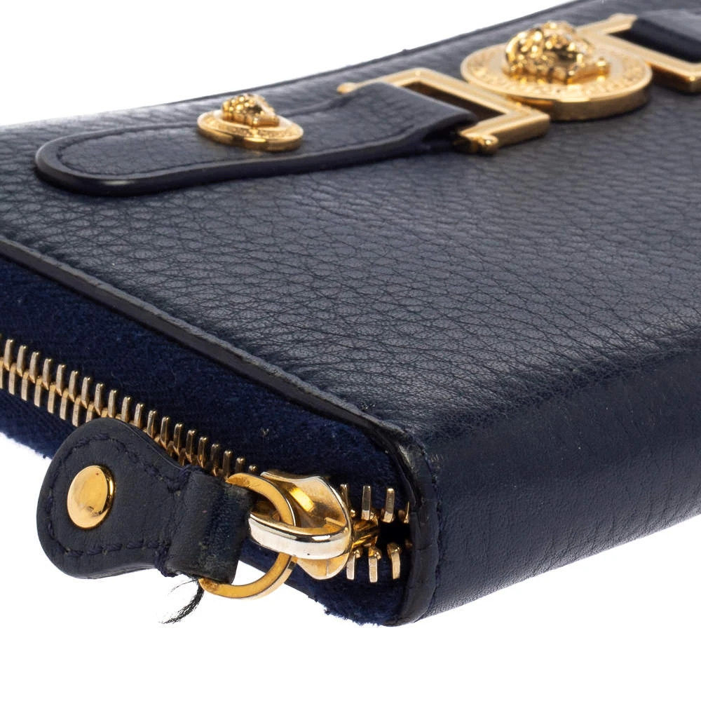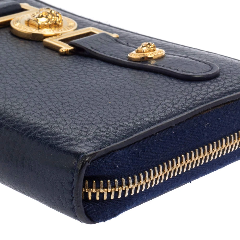 Sewn beautifully using leather, this Versace wallet stands for resistance and durability. Durable and compact, the wallet features a well-lined interior and the medusa detail in gold-tone hardware. It is surely going to accompany your days with ease.