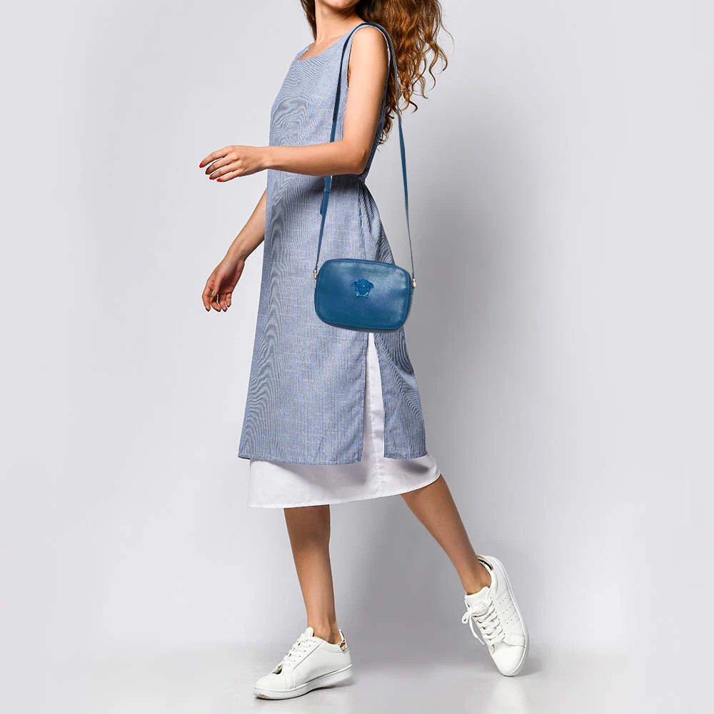 Sophisticated and luxe, this bag from Versace definitely needs to be on your wishlist. The bag is crafted from leather in a lovely blue shade and it features a smart silhouette. It flaunts a long shoulder strap and the famous Medusa logo on the front. The spacious Alcantara interior houses a slip pocket.