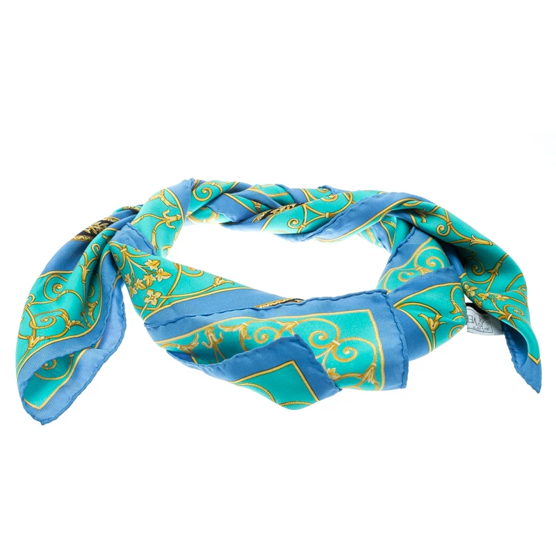 Add a touch of interest to a simple outfit with this Versace scarf. Made from 100% silk, it features blue Medusa baroque print and neatly hemmed edges.
