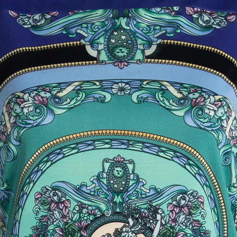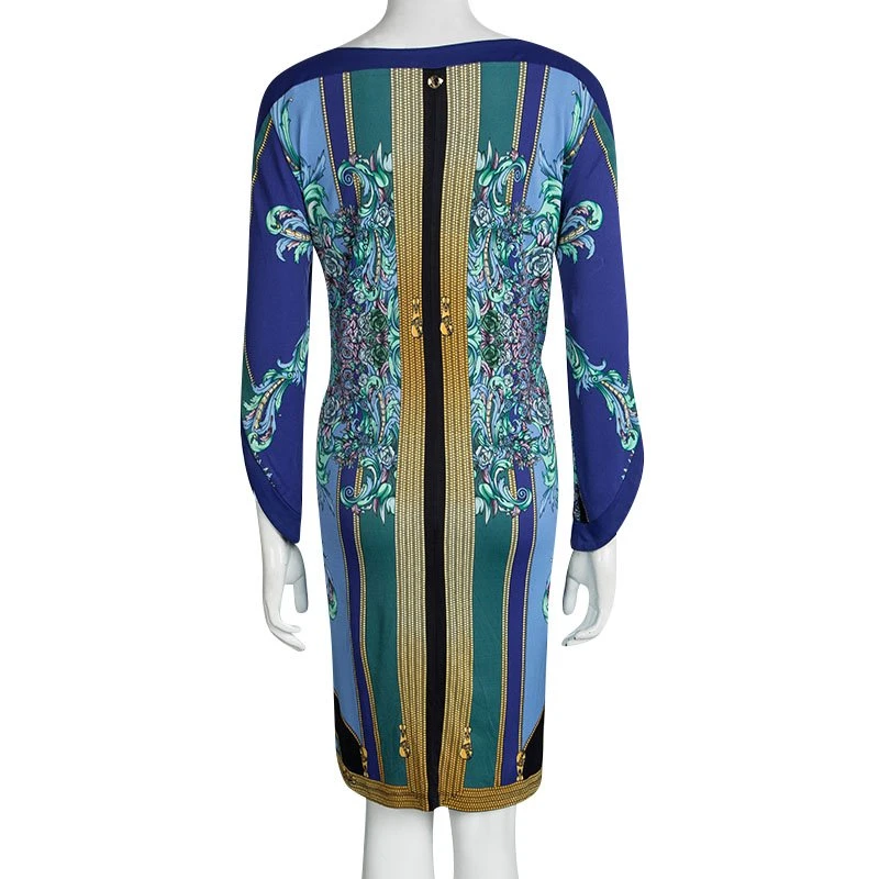 Fun loving chics can add the vibrancy of this blue printed dress in their lives. With its contemporary print, broad neck and long sleeves with a cutout detail, this feminine dress by Versace offers a flattering silhouette. No matter what event you are going to attend, it will surely let you fetch many compliments.