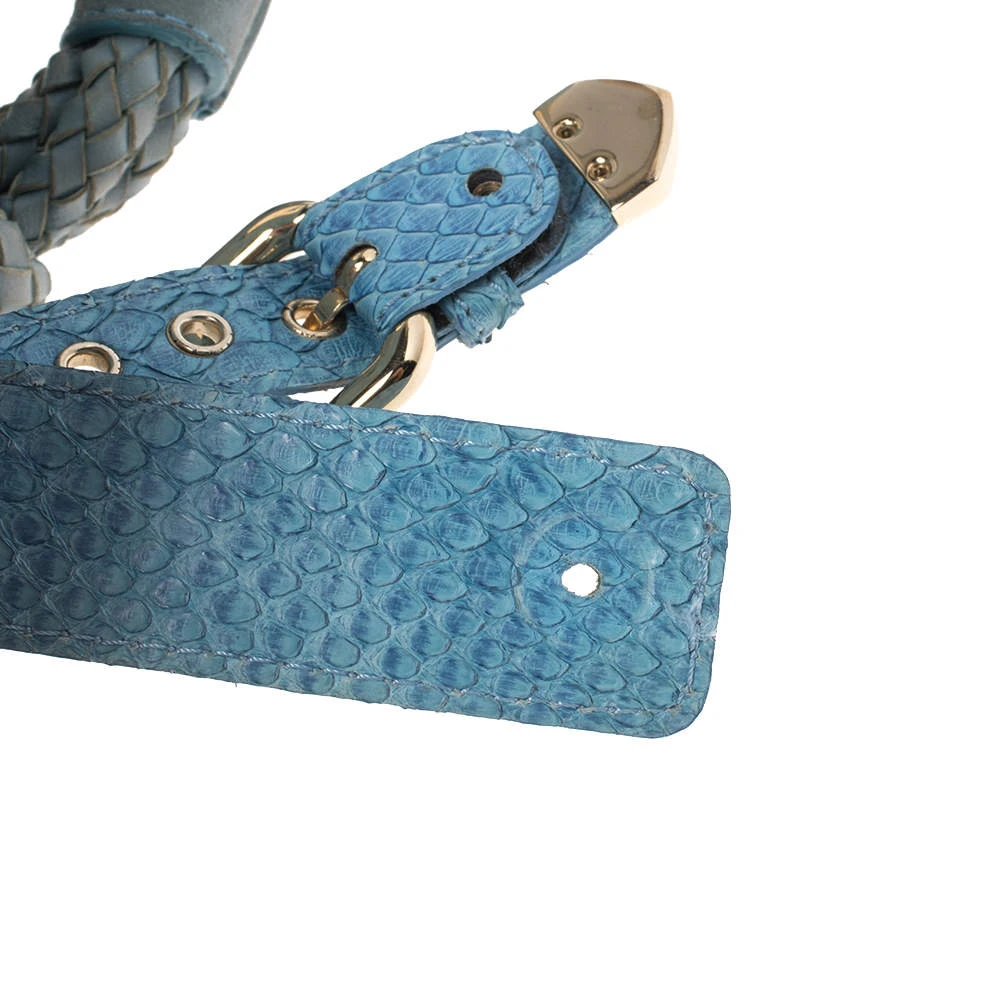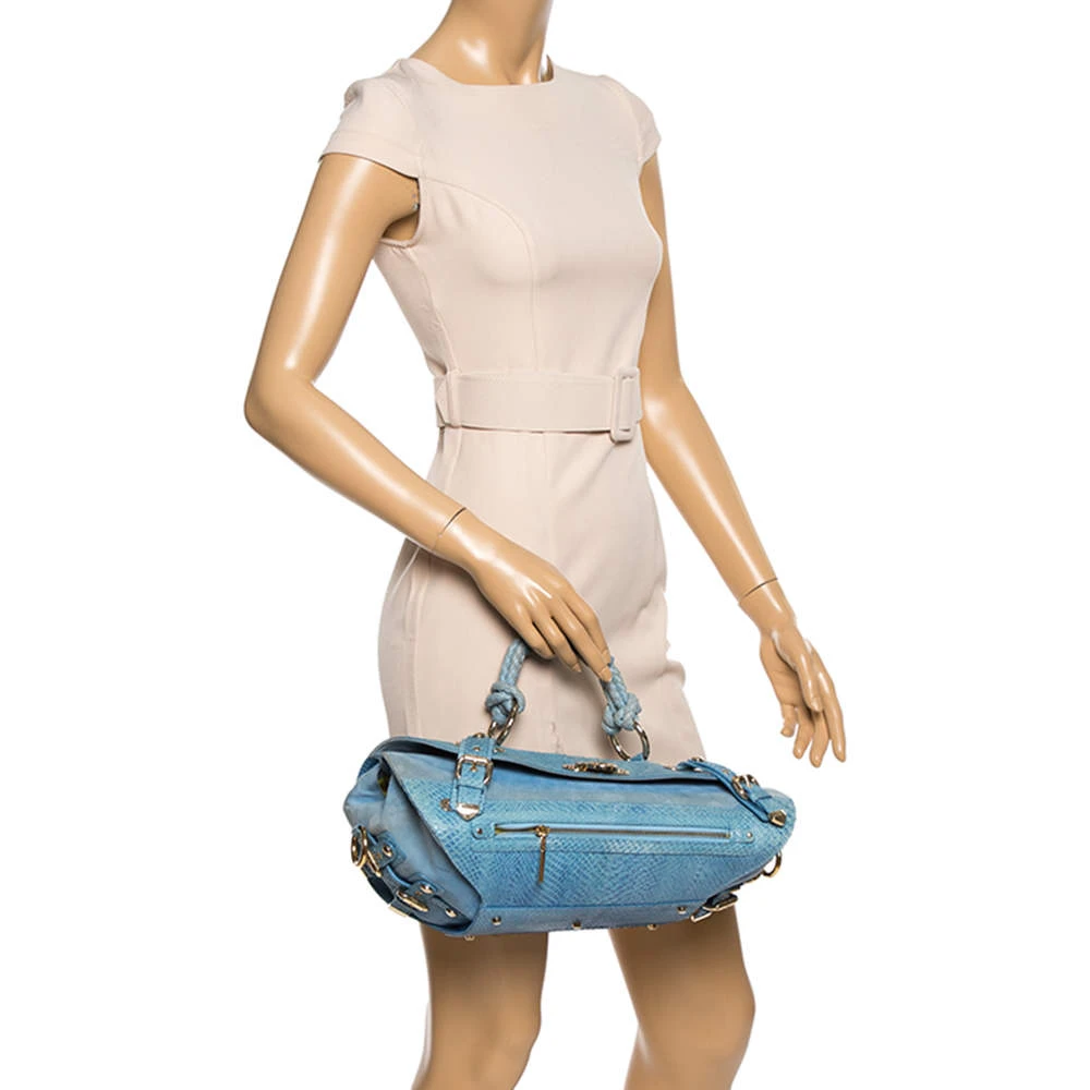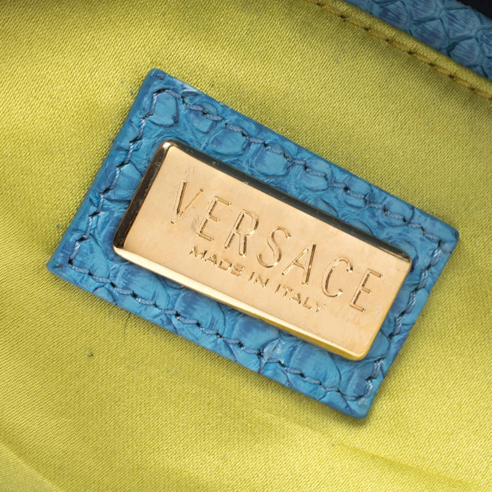 This eye-catching Canyon bag is a Versace creation. It is stylish, one of a kind and extremely glamorous. Crafted in Italy, it is made from blue python skin and suede and is accented with gold-tone hardware. It has buckle detailing on the corners and the satin-lined interior will safely hold all your party essentials. It comes with a zip pocket, a single handle and brand logo on the front. Get this bag and be the talk of the town instantly. (NOTE: FOR UAE CUSTOMERS ONLY)