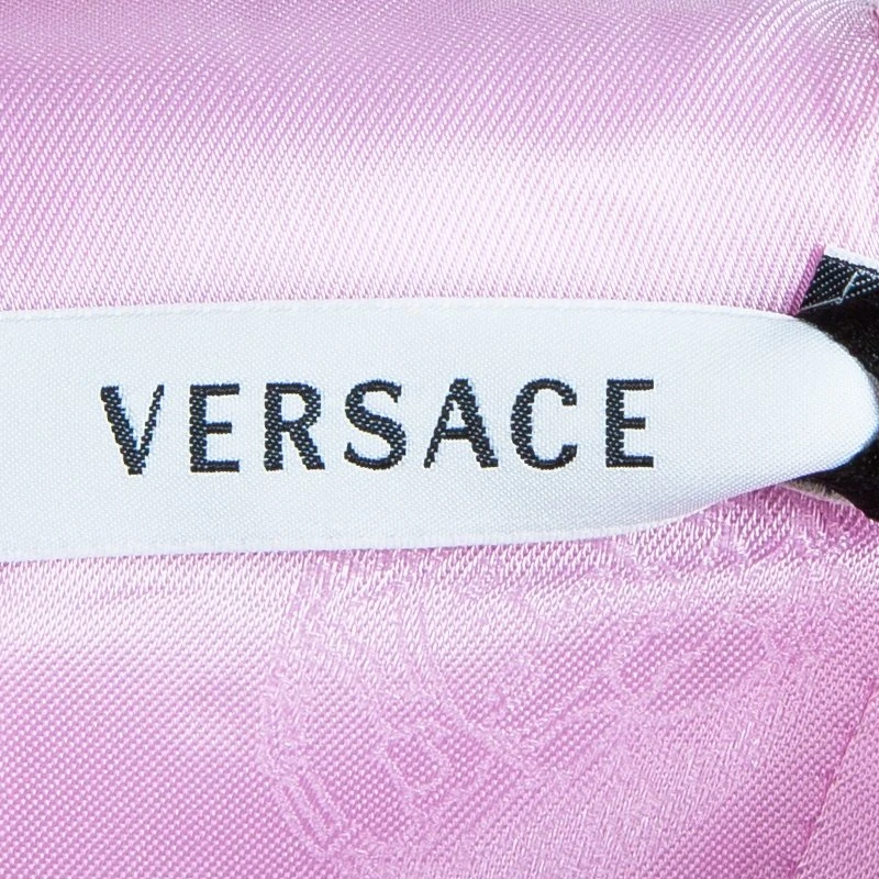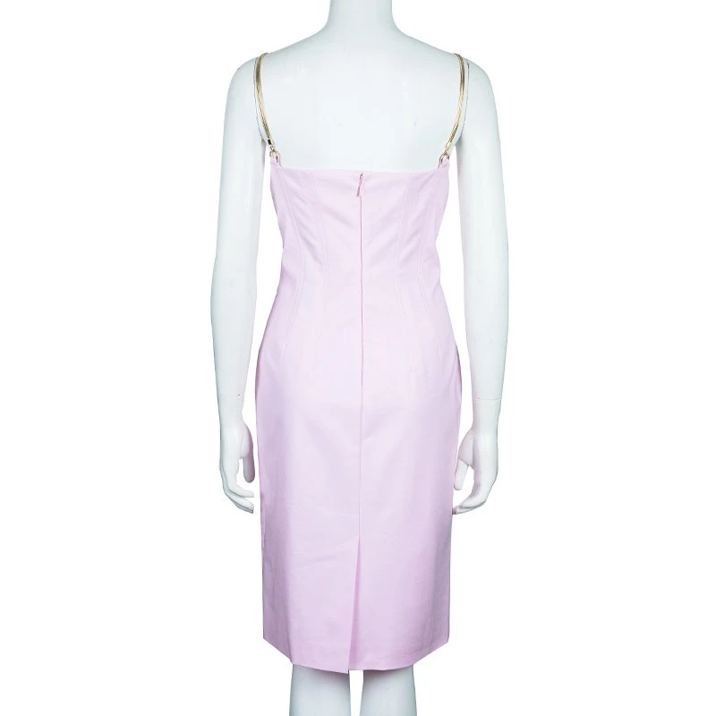 Make your romantic date a special one in this outstanding dress by Versace. Crafted in a brilliant blush pink cotton, it features chain straps with woven charms in gold-tone. It has a rear zipper fastening. Wear this with tall peep toe pumps for a drop-dead look!