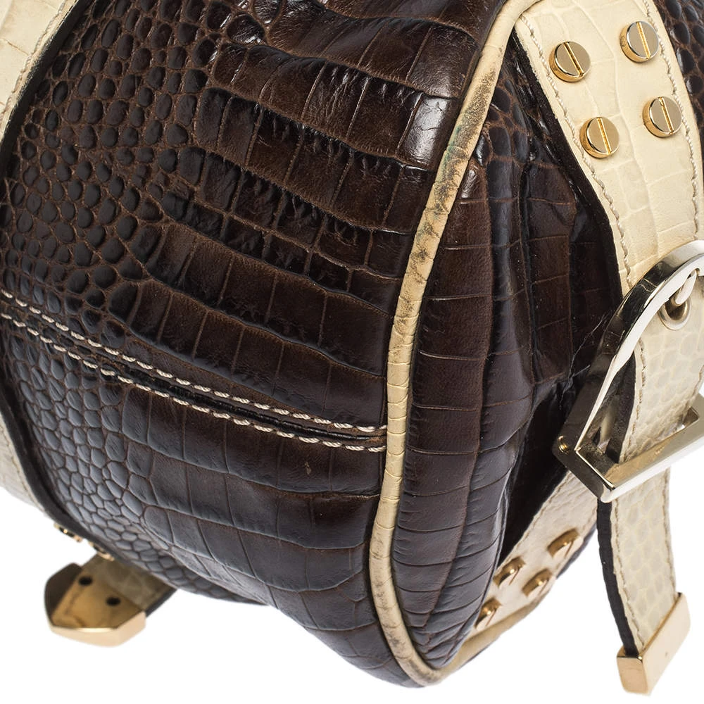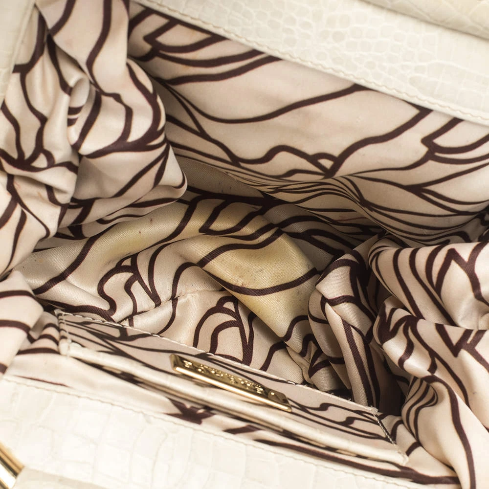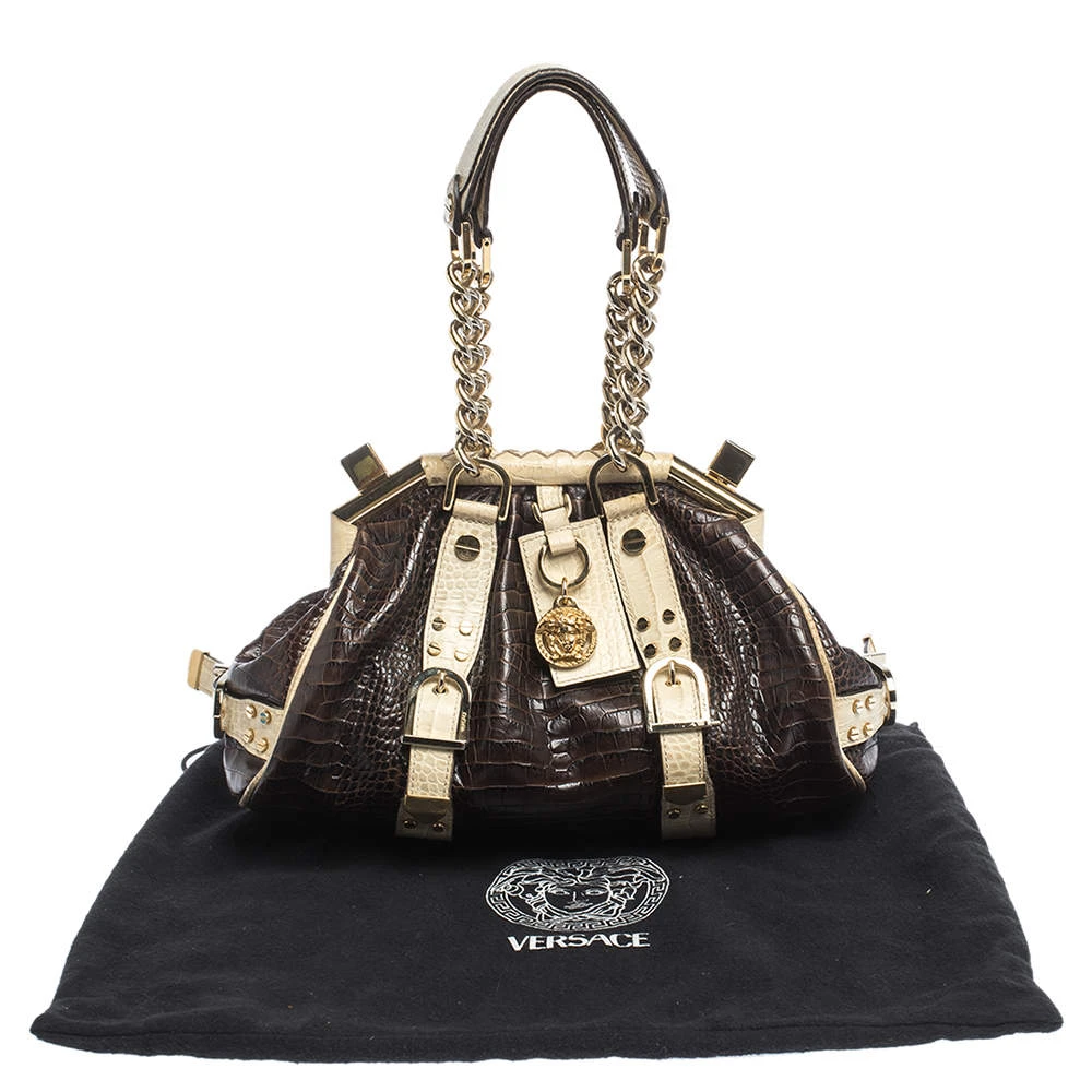 Sophisticated and luxe, this bag from Versace definitely needs to be on your wishlist. The bag is crafted from croc-embossed leather in lovely brown & cream shades and it features a flattering silhouette. It flaunts dual handles and the famous Medusa logo on the front. The spacious satin interior that can house all essentials.