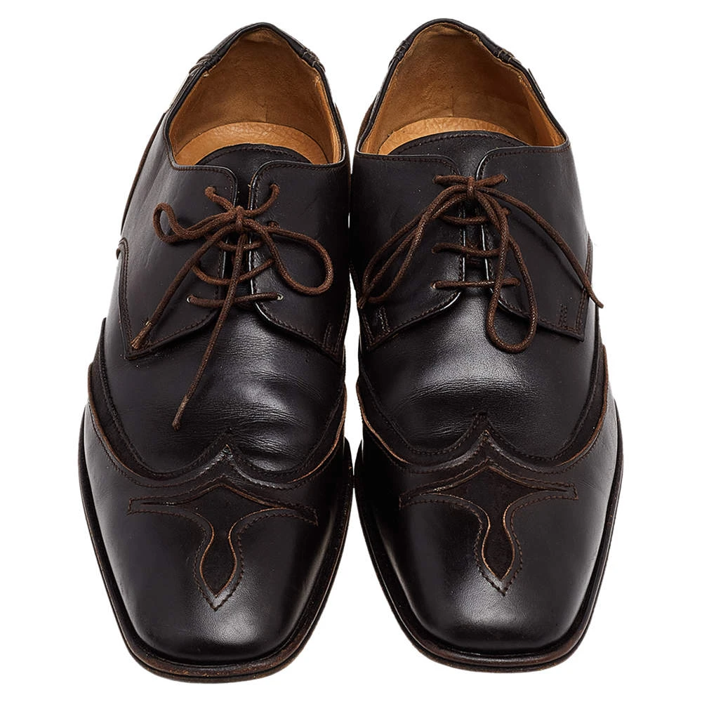 You’ll find this pair of Versace derby shoes an essential addition to your shoe collection. Crafted immaculately, the shoes are constructed to give you a polished look. The shoes are detailed with neat stitches, simple laces, and low heels.