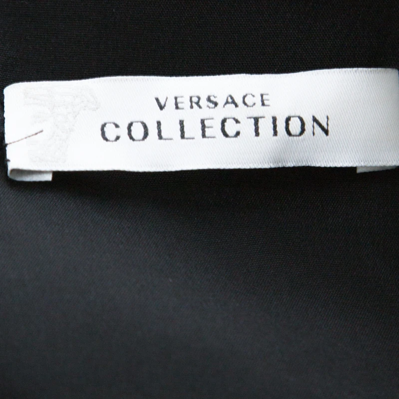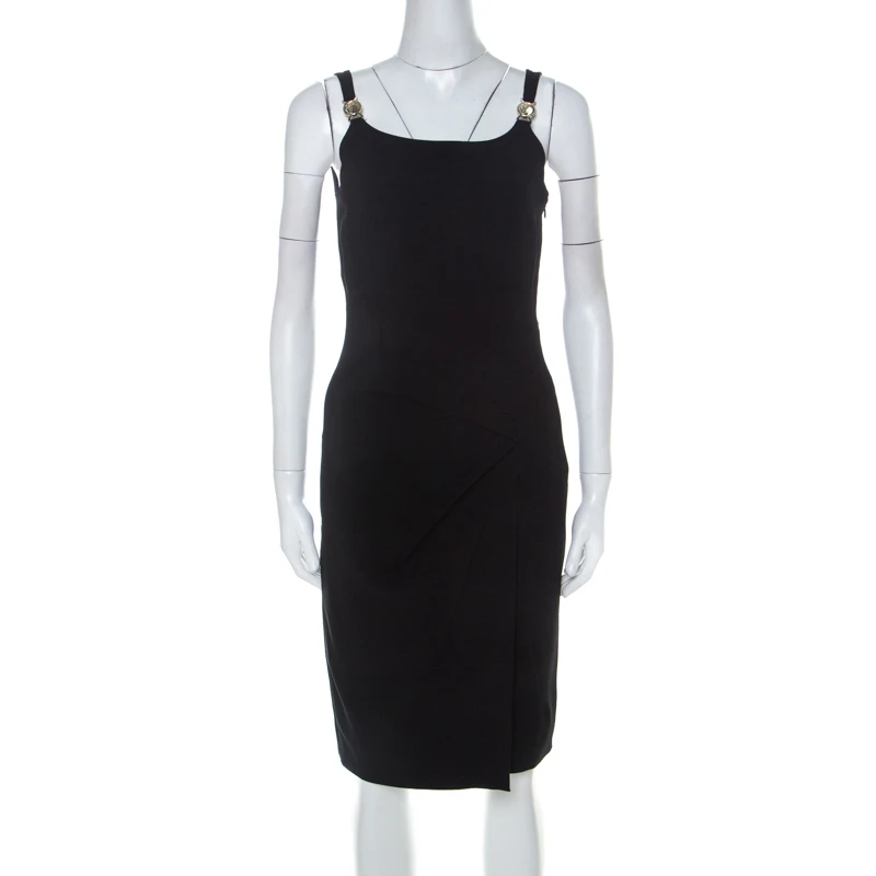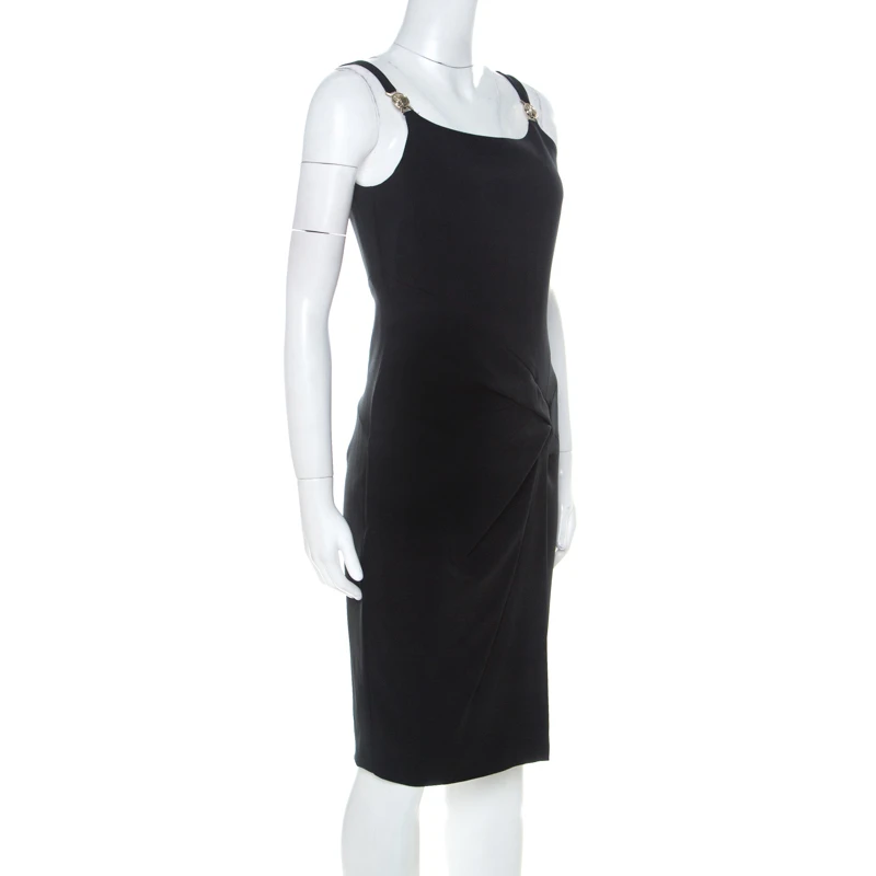 One of the most loved brands in the fashion industry, this Versace Collection dress is a classic piece to own. It is cut from a blend of fabrics and features a draped pattern on the front. Style this black sleeveless dress with the right accessories for an impeccably classy look.