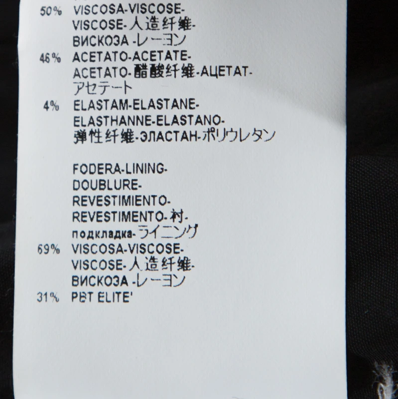 - Fabric: Shell: 50% Viscose, 46% Acetate, 4%: Elastane; Lining: 69% Viscose, 31% PBT Elite