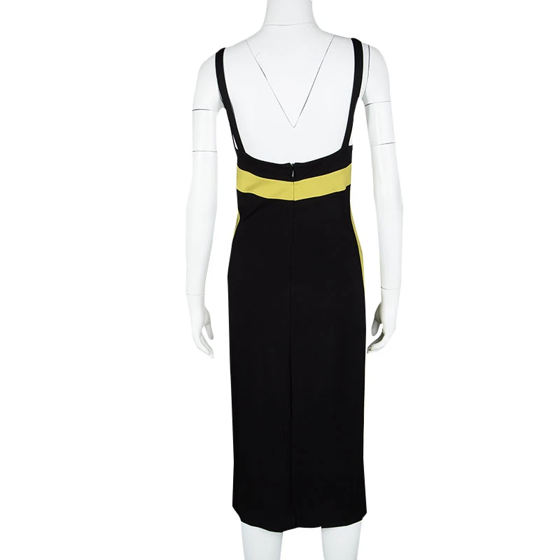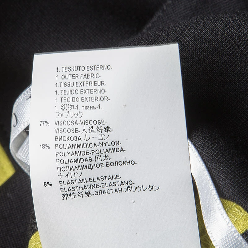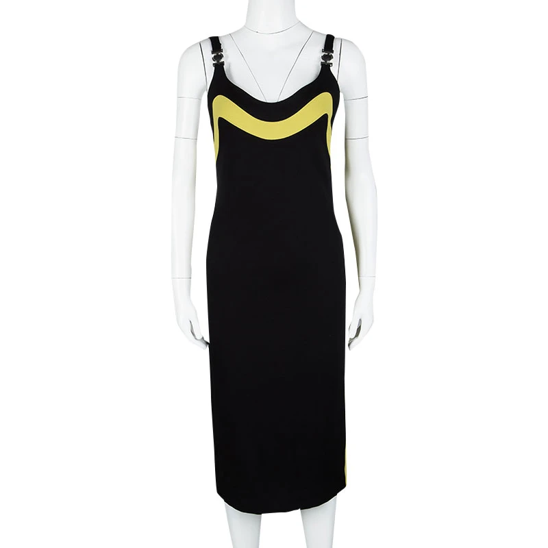 Show off your casual style when you wear this dress from Versace. The black knit dress with a contrast trim has a deep back with a zipper closure and buckle detailing on shoulder straps. Pair it with heels and a clutch for a fashionable look.