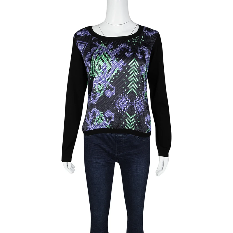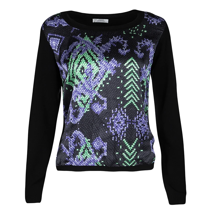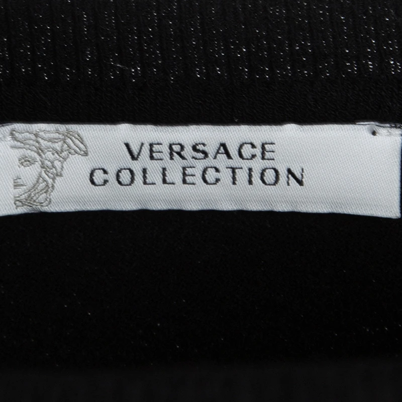 We love this top from Versace Collection as it is high in style and appeal. It comes flaunting long sleeves and prints on the silk panel at the front. You can team it with pants or shorts and high heels.