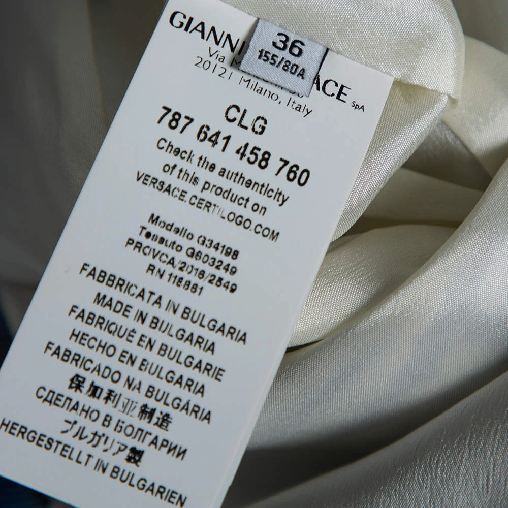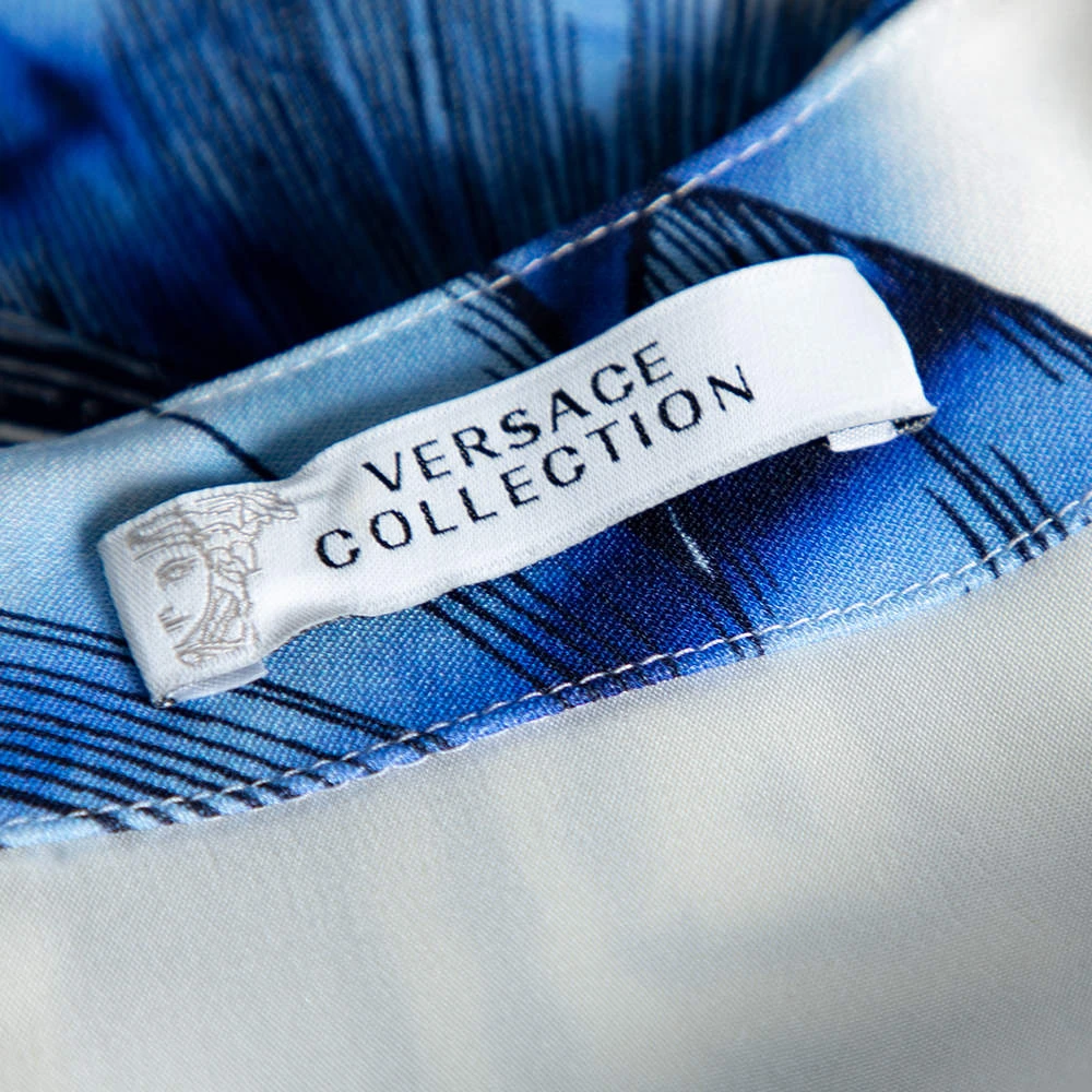 Tailored masterfully, this dress is a Versace Collection creation. It has been designed using blue leaf printed crepe fabric and features a sleeveless style, a fitted shape, and a zip closure. This dress will make you look stunning.