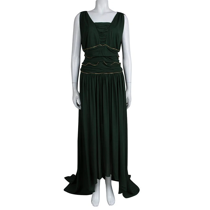 Show-stopping silhouettes are Versace Collection’s signature. It’s crafted from acetate polyamide-blend and fashioned with a flattering ruched detailing and falls into a floor-pooling hem that ensures graceful movement with every step. The gold-tone zipper detailing at the cinched waist adds a contemporary edge.