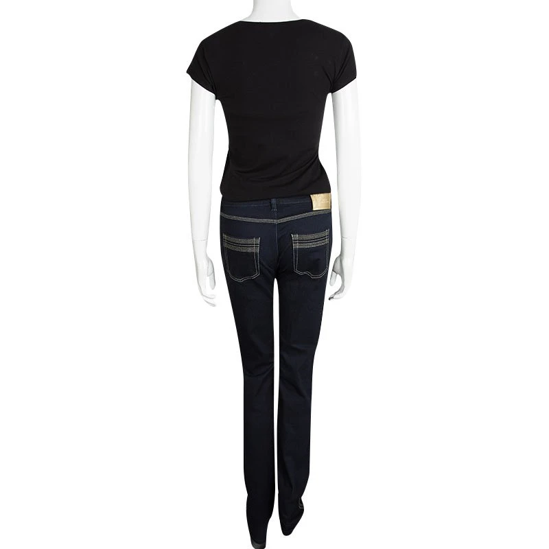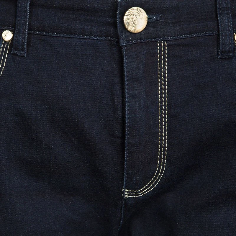 Get this essential wardrobe staple straight fit jeans from Versace and experience its perfect fit. These jeans are a wonderful indigo colored pair and are made from a cotton blend. Made in Italy, this denim is a class apart and features both front and back pockets. An ideal pair for outings with friends, these can be worn with any top and stylish loafers.