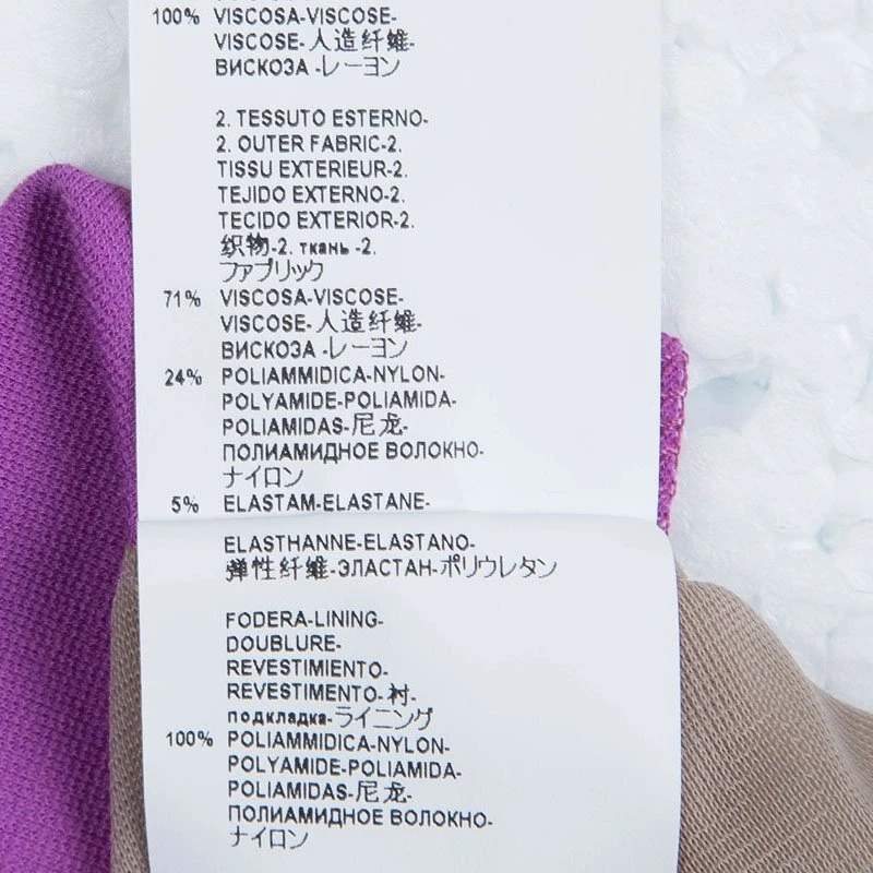 - Fabric: Fabric A : 100% Viscose ; Fabric B : 71% Viscose , 24/% Nylon , 5% Elastane ( Lining : 100% Nylon )