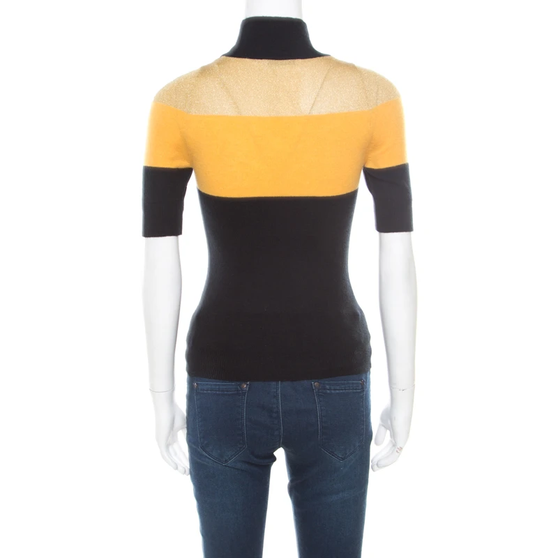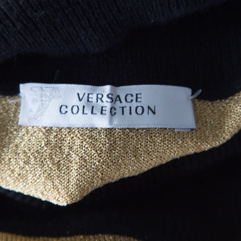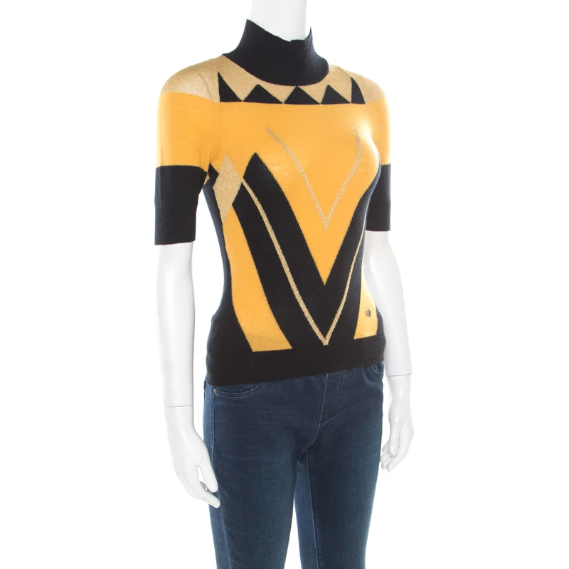 Gorgeous in appeal and design, this sweater from Versace Collection is set to win hearts! It comes beautifully made from a cashmere blend and designed with short sleeves, high neckline, and patterns in different colours.