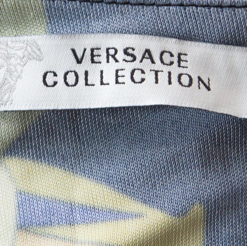 This lovely top comes from the house of Versace. Crafted from quality fabric, it carries a beautiful multicolored print throughout. It has a faux-wrap style, long sleeves, asymmetrical neckline and a good fit. It is great for casual days and can be worn with a host of bottoms.
