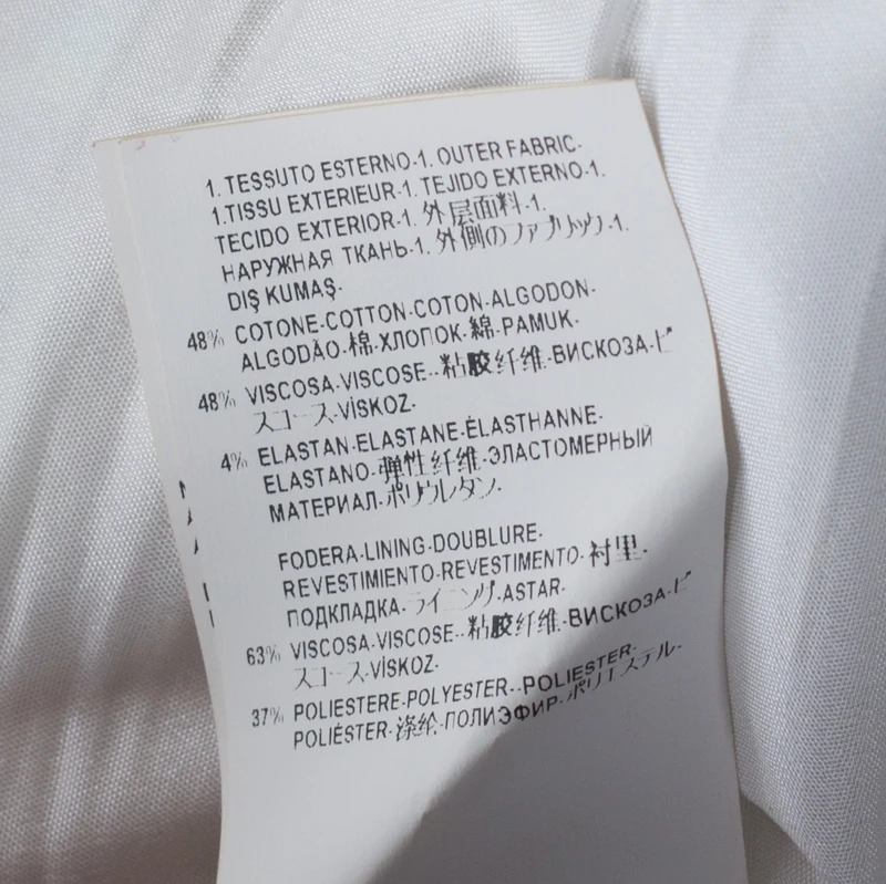 - Fabric: Shell: 48% Cotton, 45% Viscose, 4% Elastane; Lining: 63% Viscose, 37% Polyester