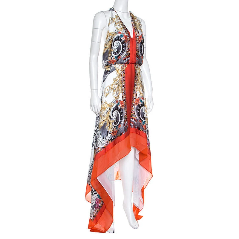 This a la mode dress from the house of Versace features a stunning design making it a must-have piece in your closet. Kick-start your weekend on a high note with this pleasing multicolour dress that comes with a racerback, a plunging neckline and a beautiful print all over. Made from prime quality material, this dress is second to none.
