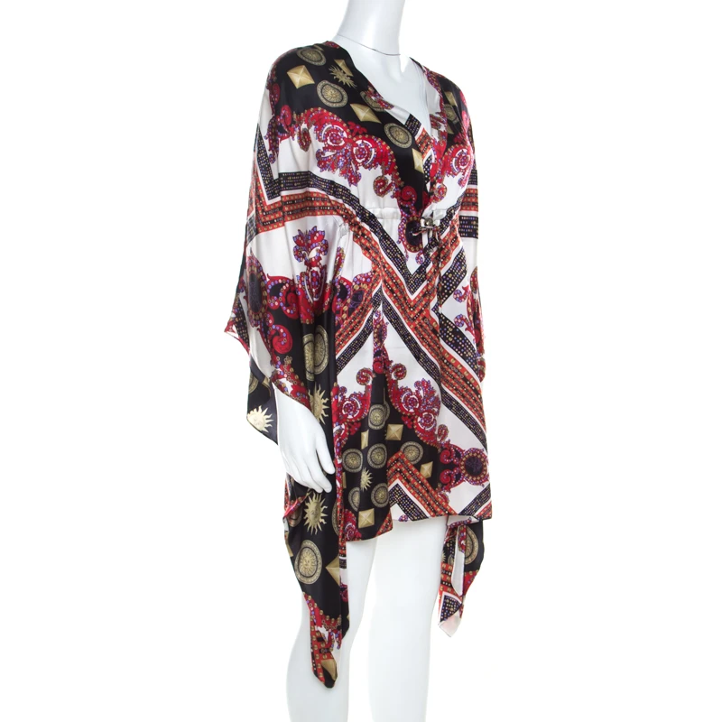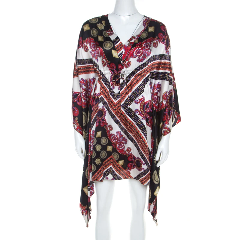 This kaftan tunic from Versace Collection is a holiday staple; it is tailored with silk in a flowy structure and can be stacked in your luggage using minimum space. It features a multicoloured sun and crystal motif prints and a V-neckline. Wear this with gladiator sandals or sliders and stroll on the beaches with utmost style and comfort.