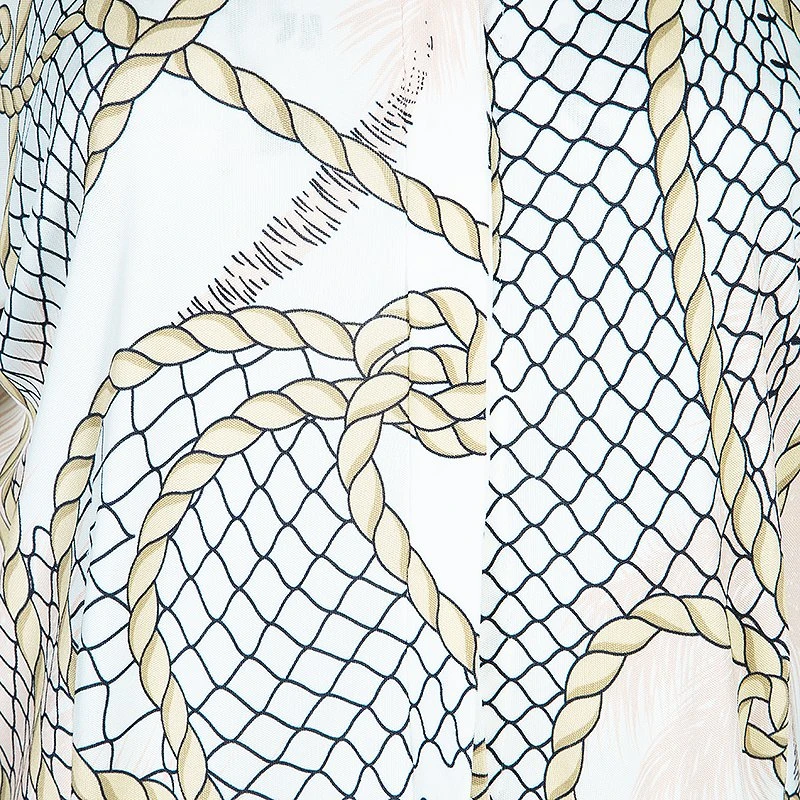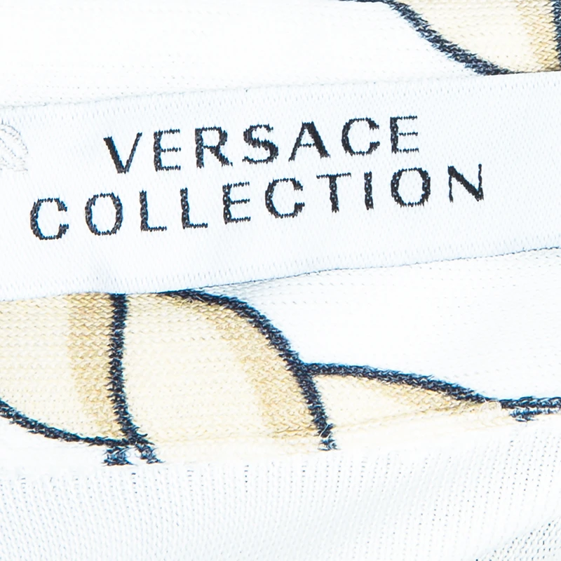 Versace maintains its design element with this multicolor top. Cut from viscose, it has a collared neck with button down closures in the front and long sleeves with elasticized ends.