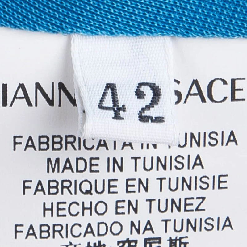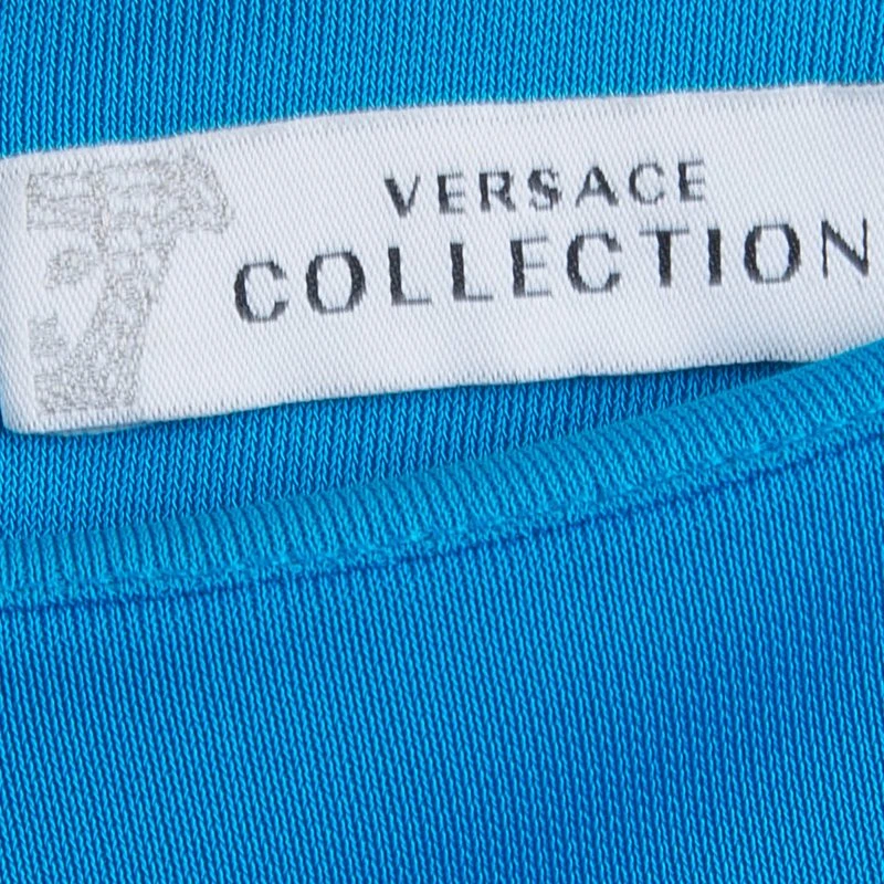 Versace Collection delivers a sophisticated take on femininity with this turquoise blue dress. Crafted from 100% viscose, it has a round neckline, flared sleeves, and comes with a gathered detail at the front for a flattering silhouette. The dress is fastened with a rear zip closure.
