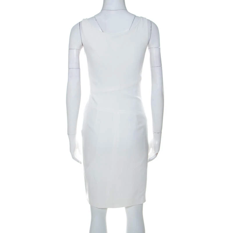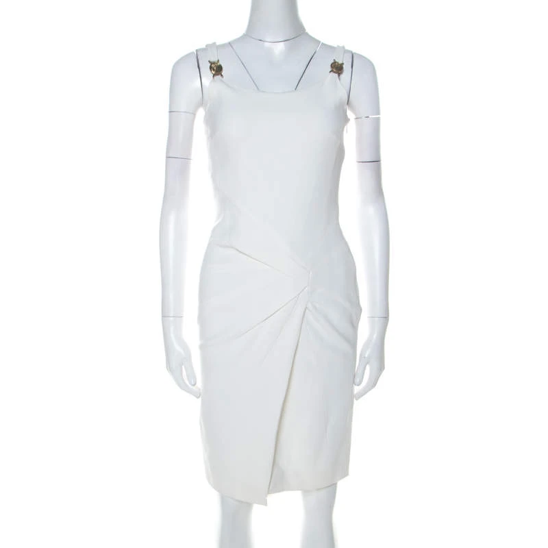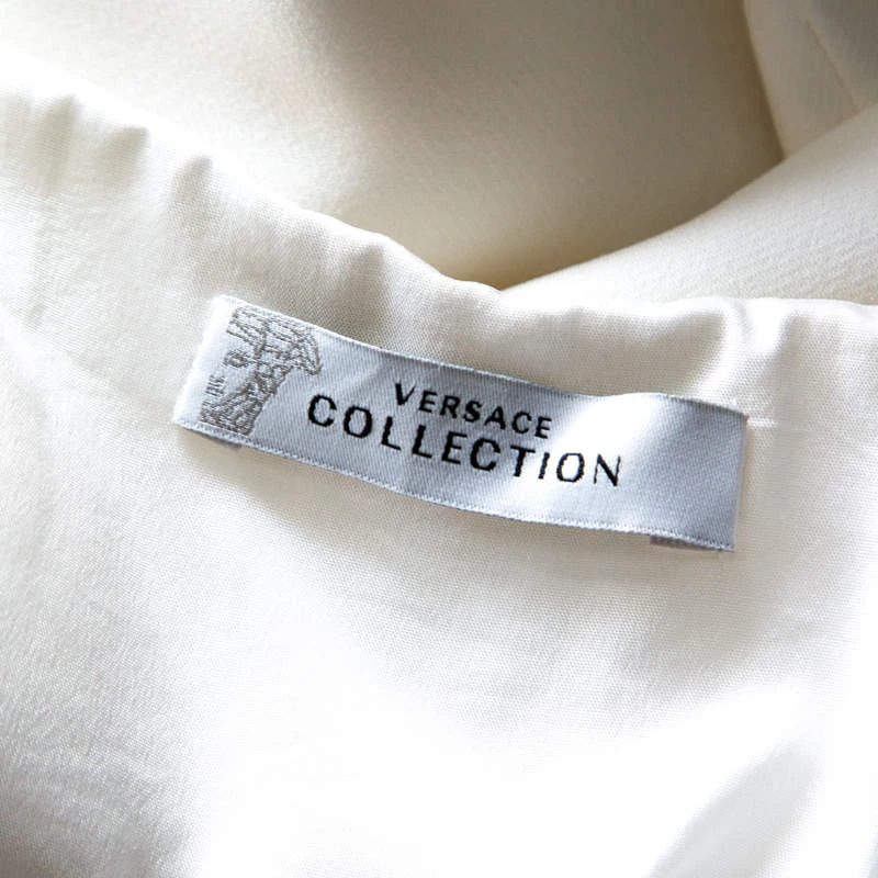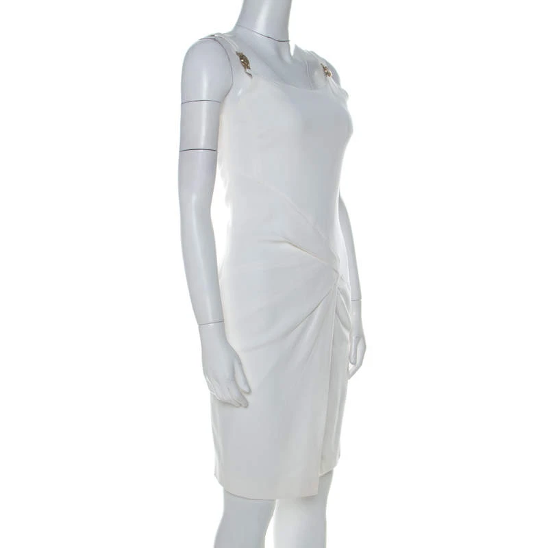 Look nothing less than a fashion model in this chic Versace Collection dress. This stylish white piece is ideal for all formal occasions. Tailored from quality fabrics, this dress, with emblem details and overlap detailing on the front, is sure to grab everyone’s attention.