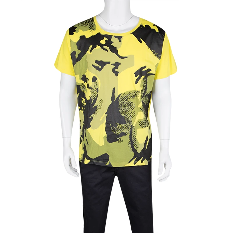 Wild hunk casual Yellow Camouflage Print short Sleeve Cotton t-shirt from the House of versace, with creative and trendy graphics, the print quality is as smooth as it can’t be felt with closed eyes hand touch, The fit is long and can be worn in casual daily wear use, 100% cotton fabric is used which is long lasting, and very soothing to wear in hot summer days.