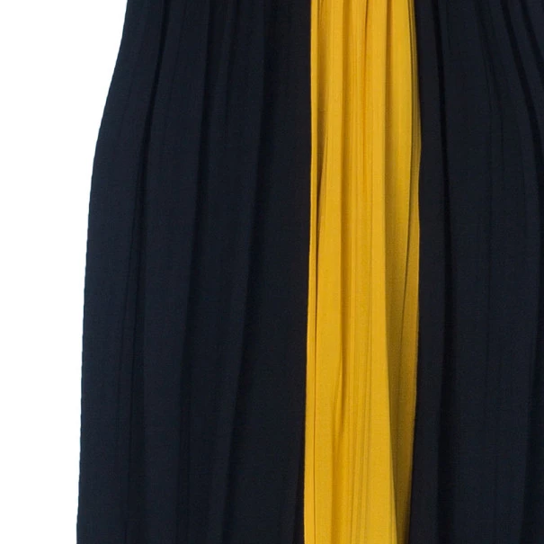 We are loving the latest color-block trend and specifically this Versace evening dress. Crafted from a viscose and polyester blend, this black dress features orange block of color down its middle, subtle pleated detailing and a halter neck.