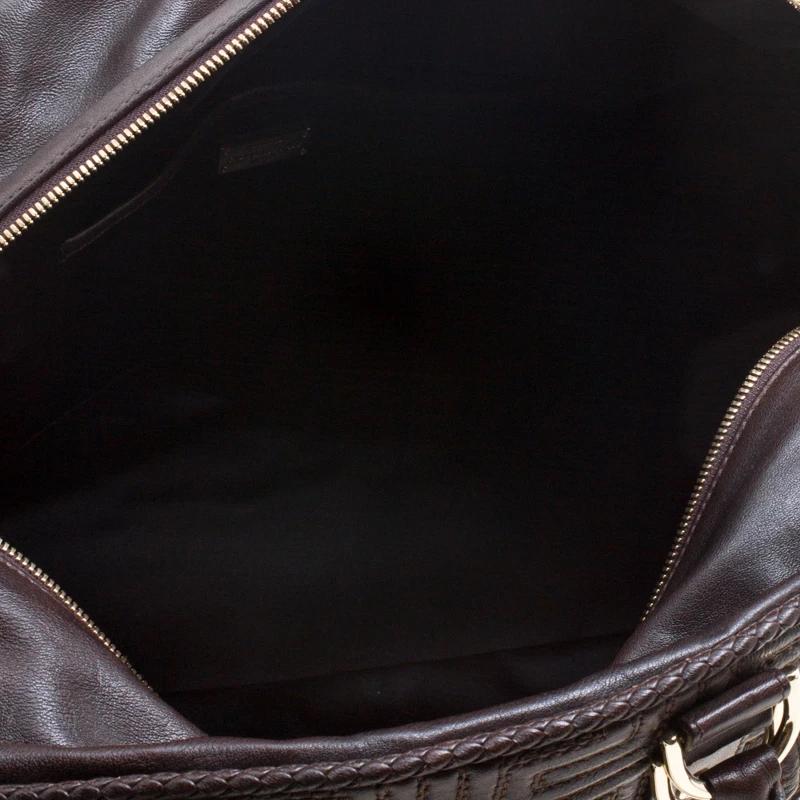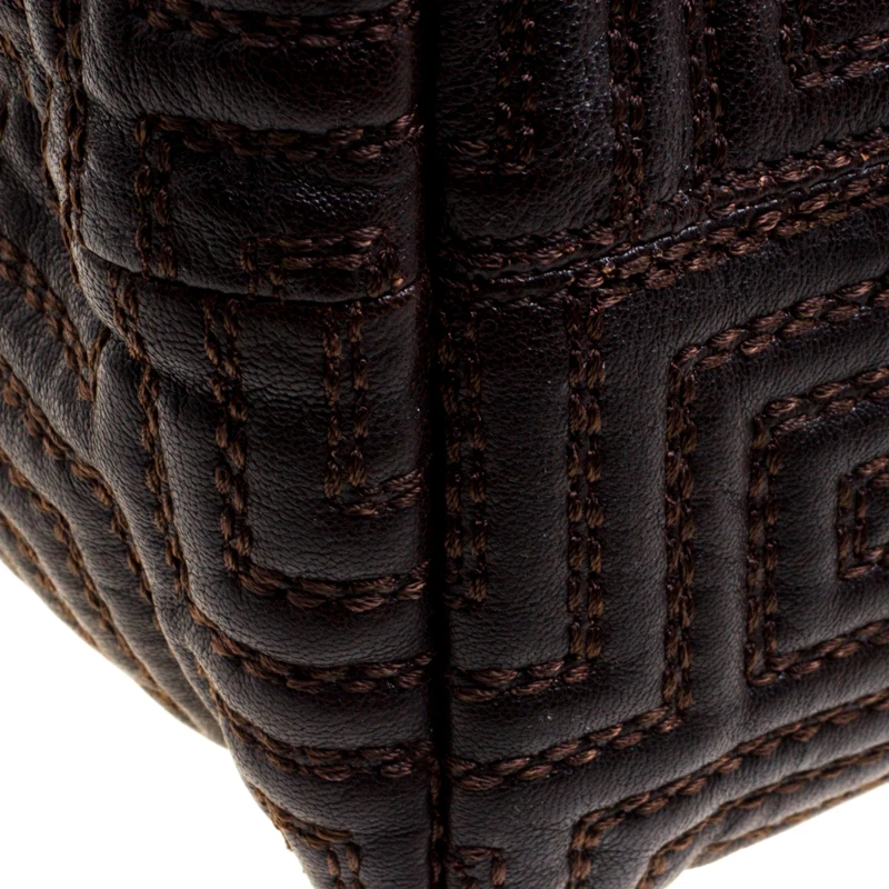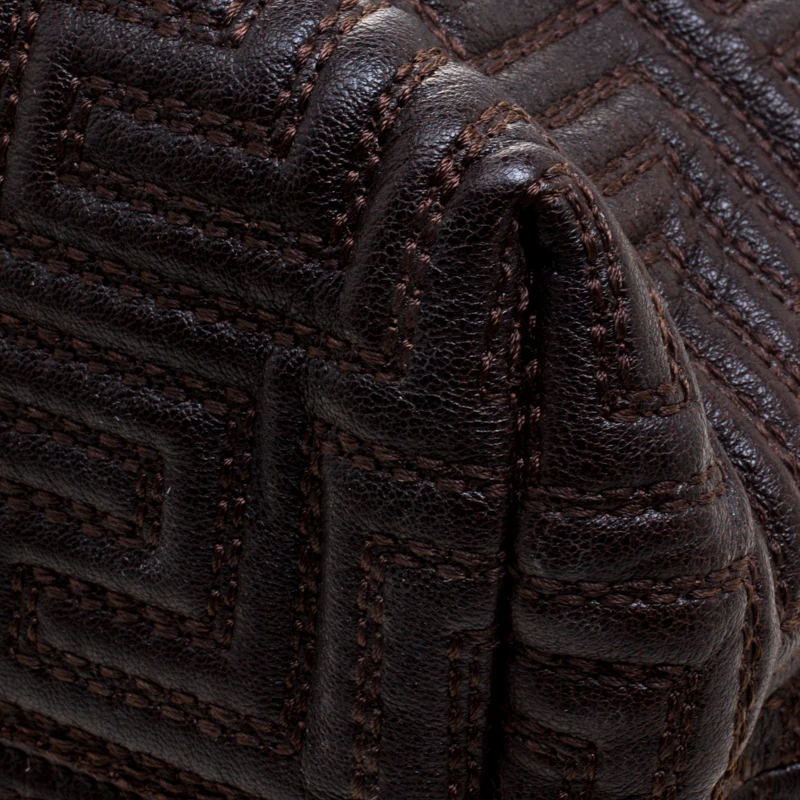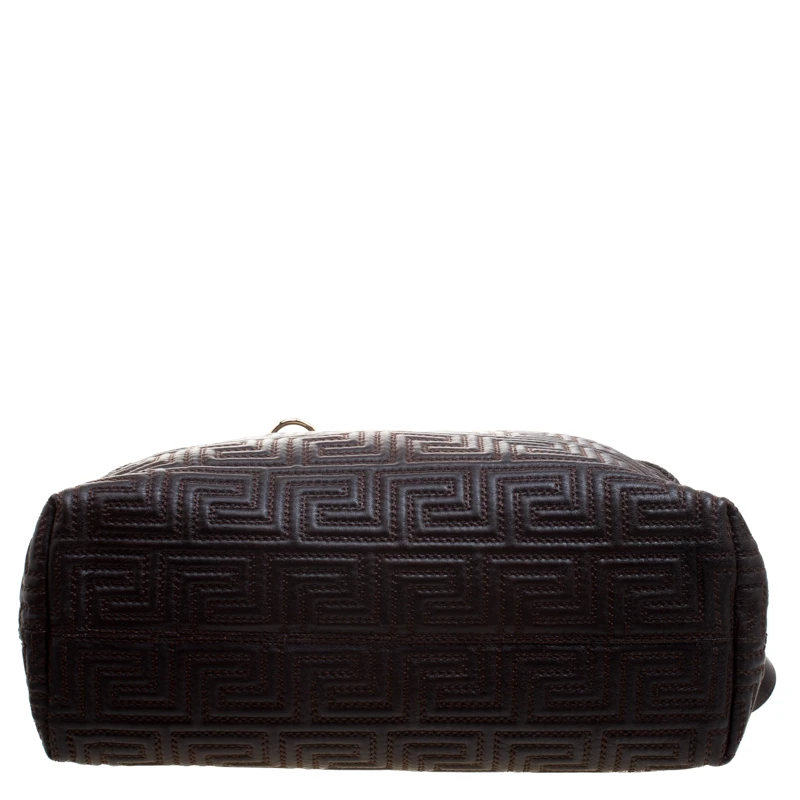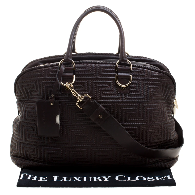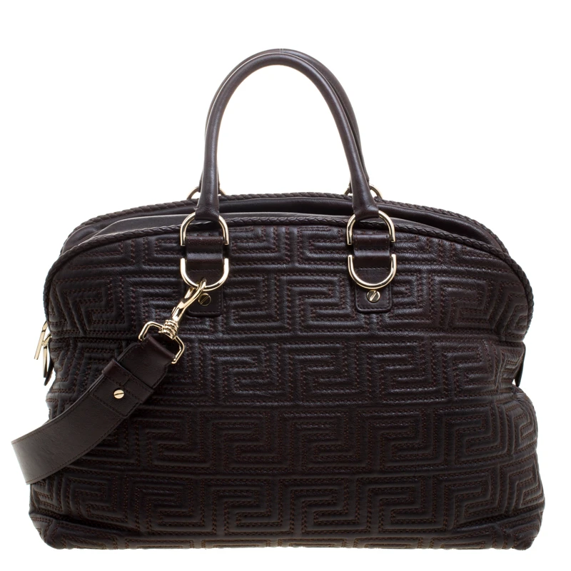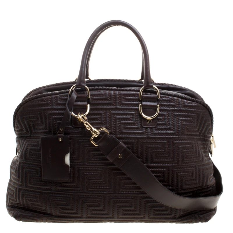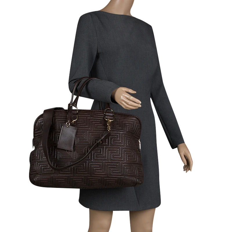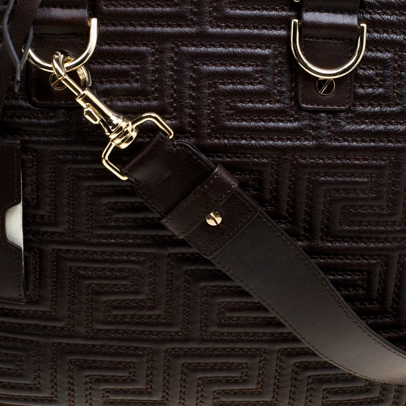 Coming from the house of Versace, this versatile bag can be used for professional settings or business trips, given its neat, uncomplicated construct. It features a dark brown leather body and fitted with the signature top handle. It features a top zipper closure and comes with a detachable shoulder strap. The sizable interior of this bag can hold more than just essentials.
