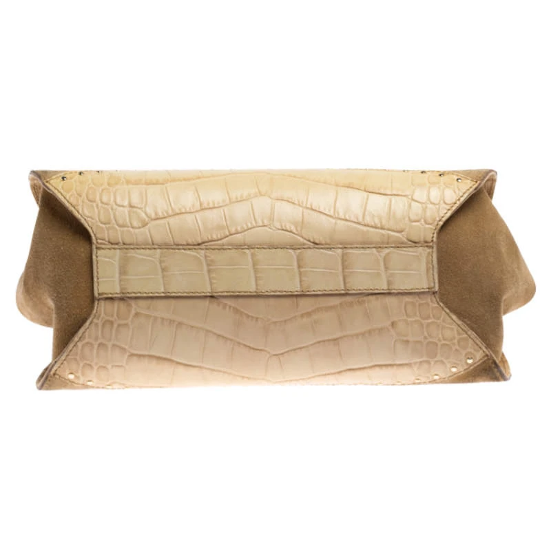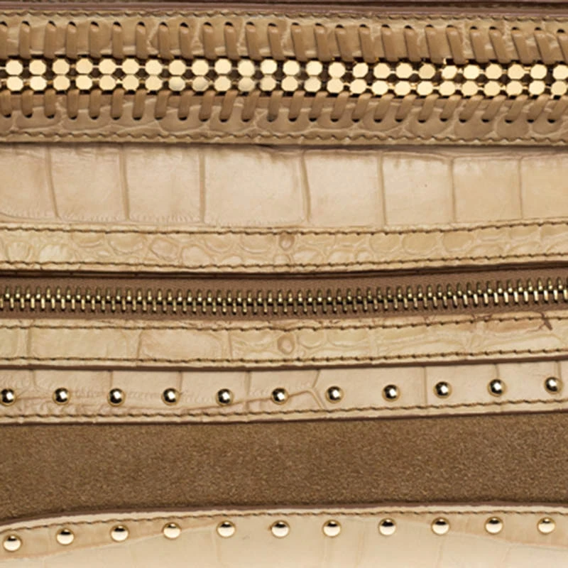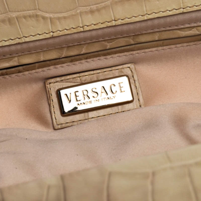 Fall in love almost instantly with this stunning shoulder bag by Versace. Lined with satin, this bag is just about perfect for your essentials. Crafted using crocodile-embossed leather, this bag is a stylish creation ready to be your companion. Swing style in your arms with this cream creation.