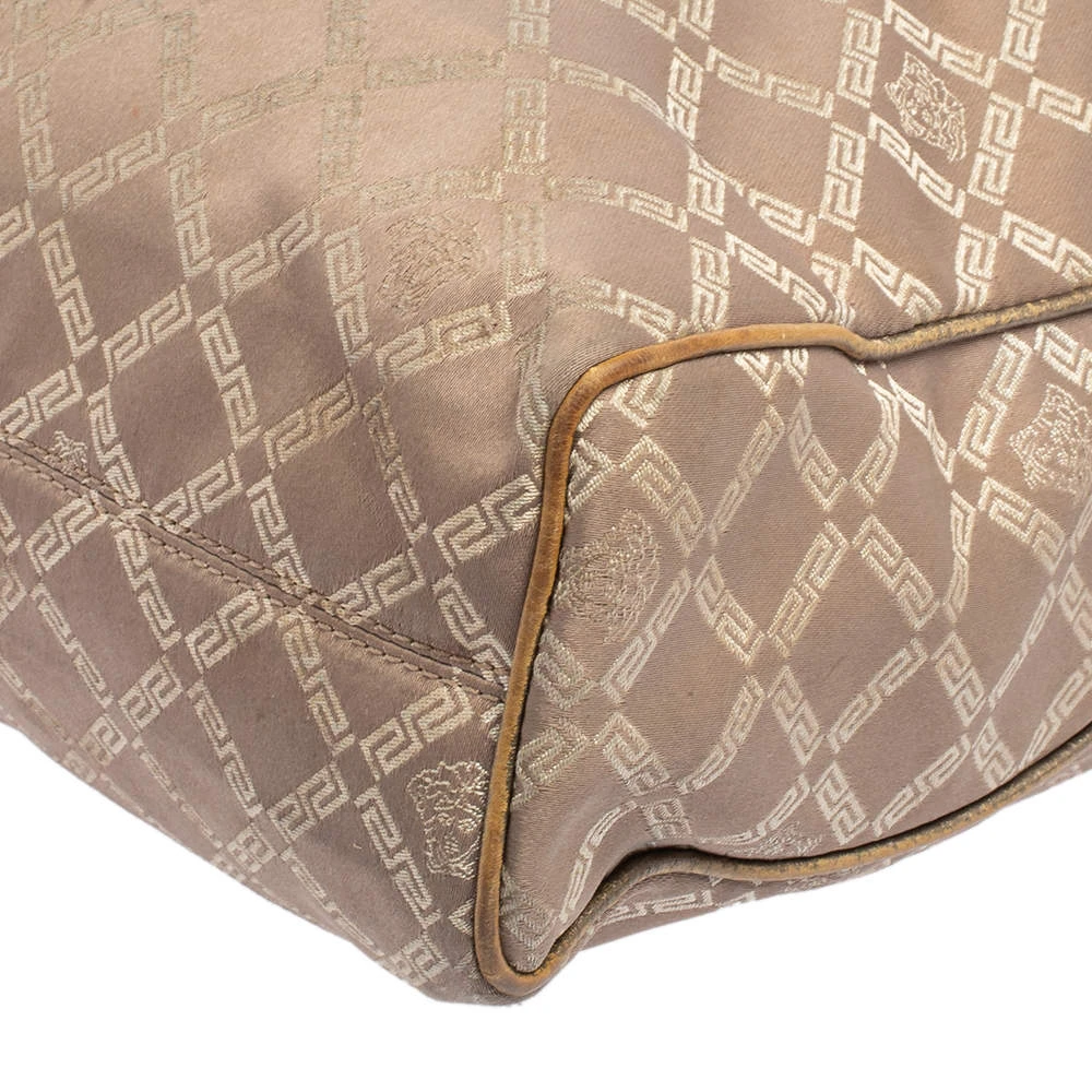 Add a touch of glamour to your attire with this attractive Versace tote. It flaunts the signature fabric and leather exterior and is perfectly completed with gold-toned fittings. This chain tote by Versace is great for daily use and will complement your outfit well.