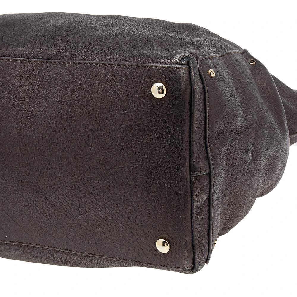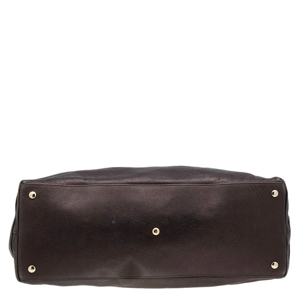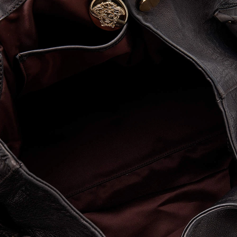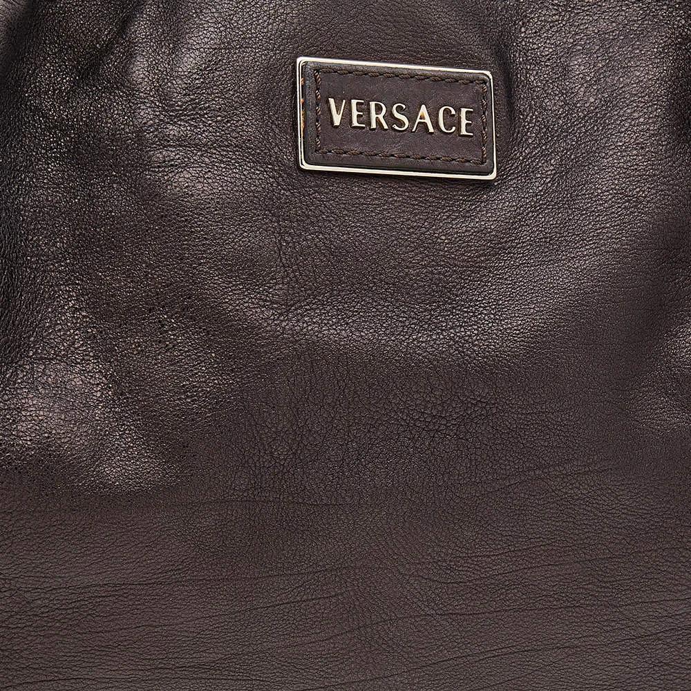This Versace tote is a simple and elegant accessory. From its design to its structure, the leather bag delivers charm and function. It flaunts chainlink handles for you to swing and a satin interior to hold all your essentials.