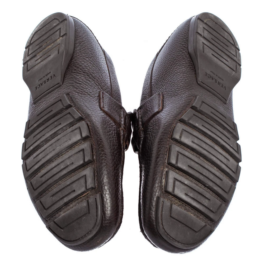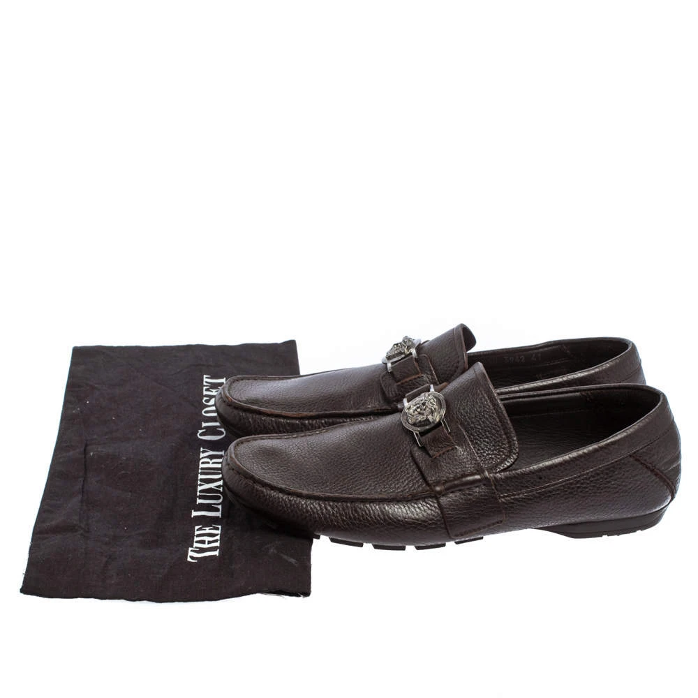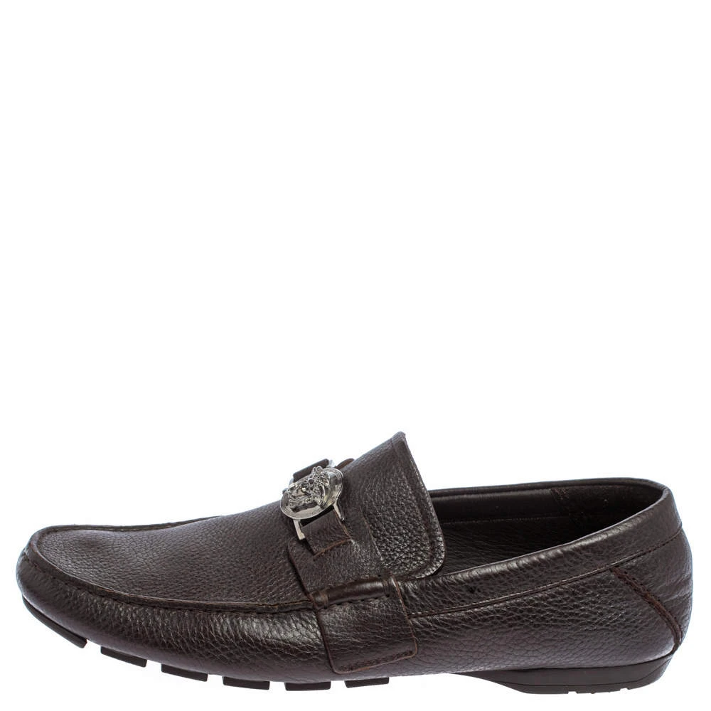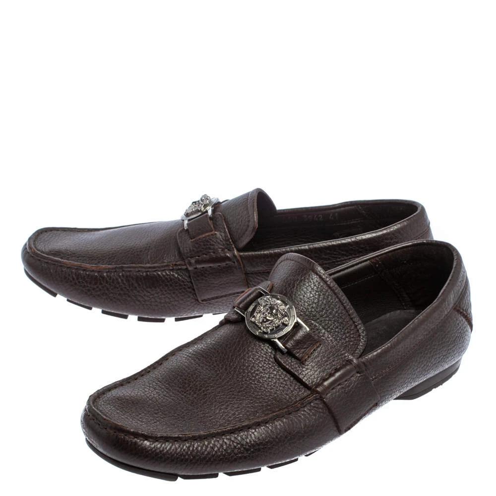 Precise stitching, use of quality materials, and a sleek shape led to the final result of this pair of loafers. They are by Versace, and this is evidently displayed with the Medusa detail on the uppers. The dark brown loafers are brimming with comfort and style.