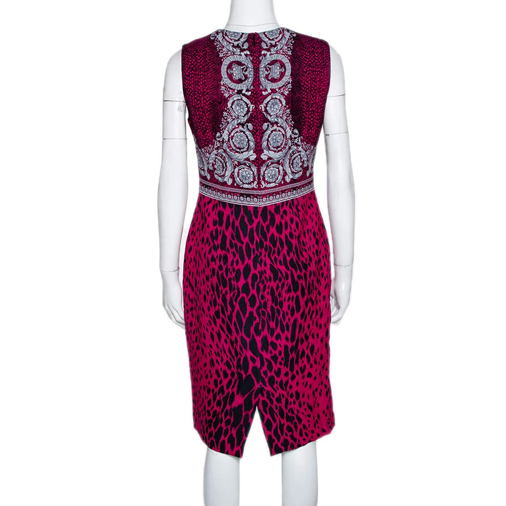 Stay in style with this trendy Versace dress that lends confidence and poise. It is crafted from a blend of quality fabrics and features a mix of animal and Baroque print that adds interest. It is tailored to offer a good fit and the silhouette makes it very stylish. Designed for a contemporary look, this pink attire is perfect for any event.