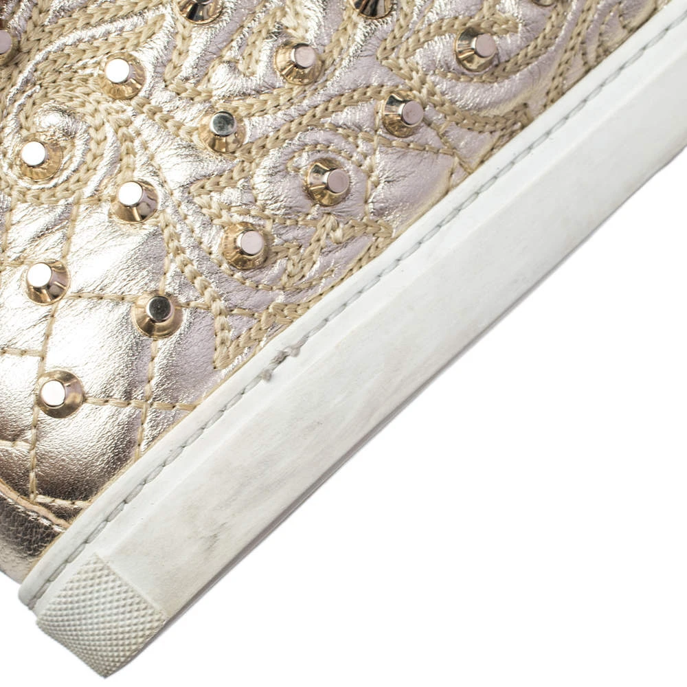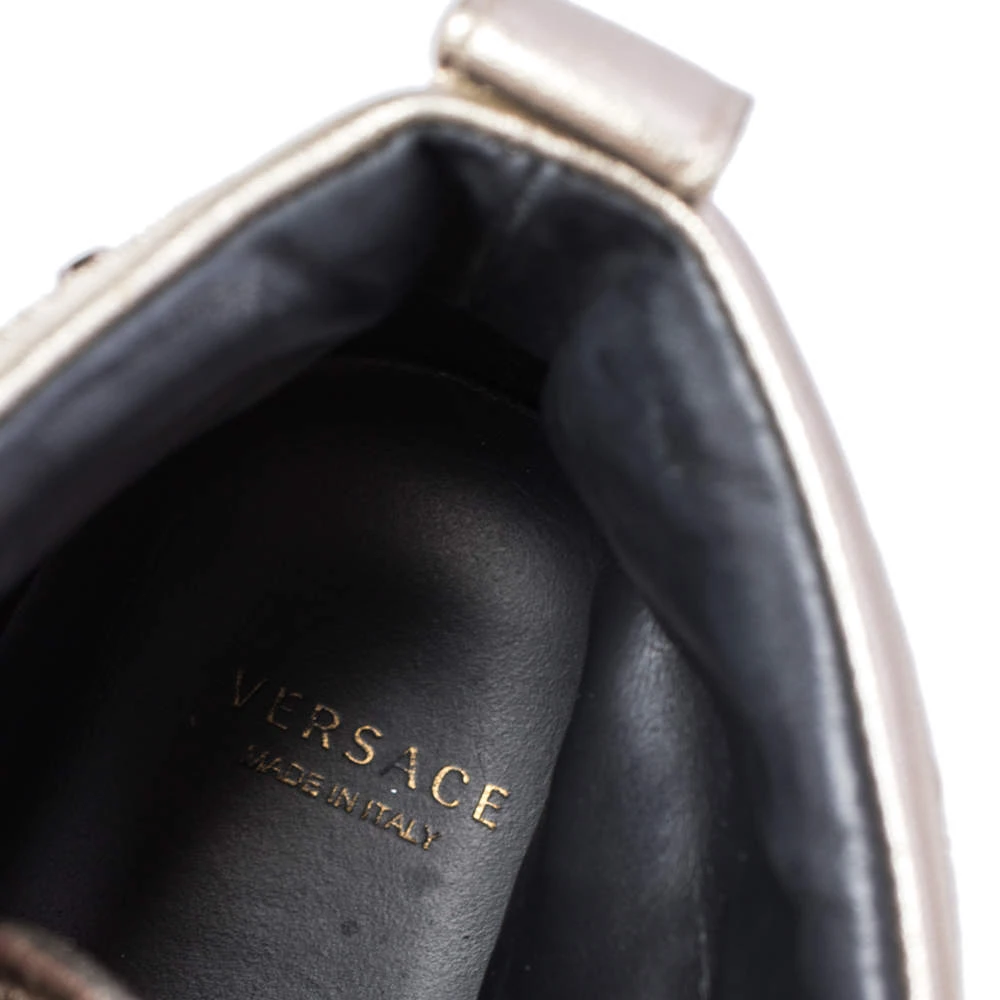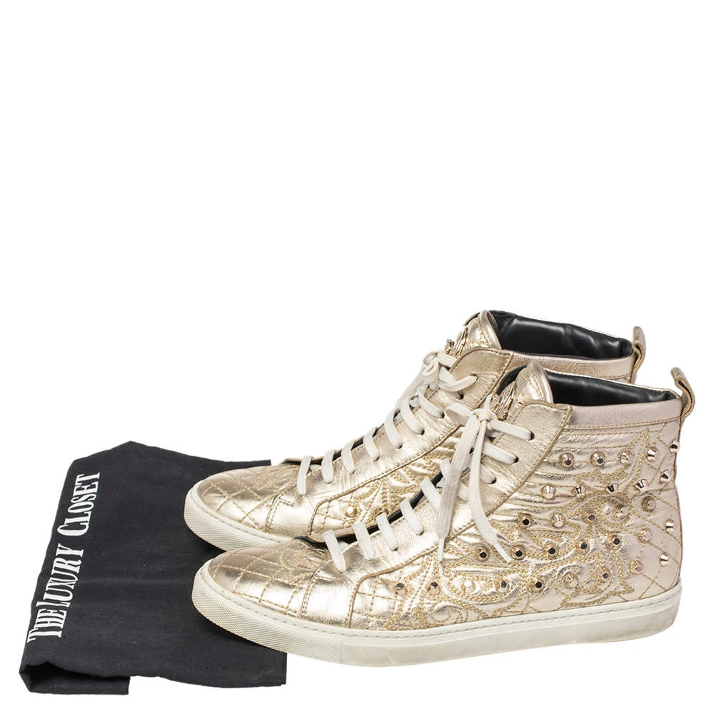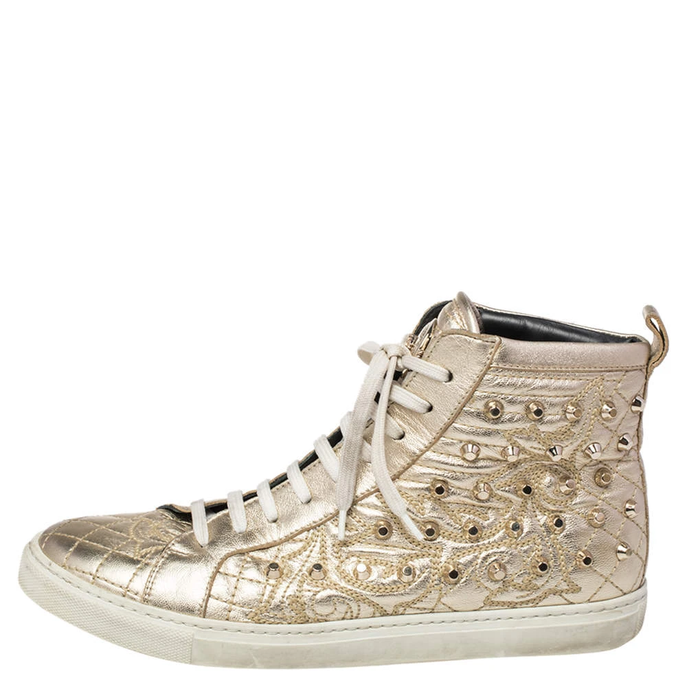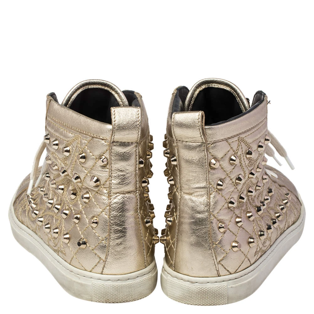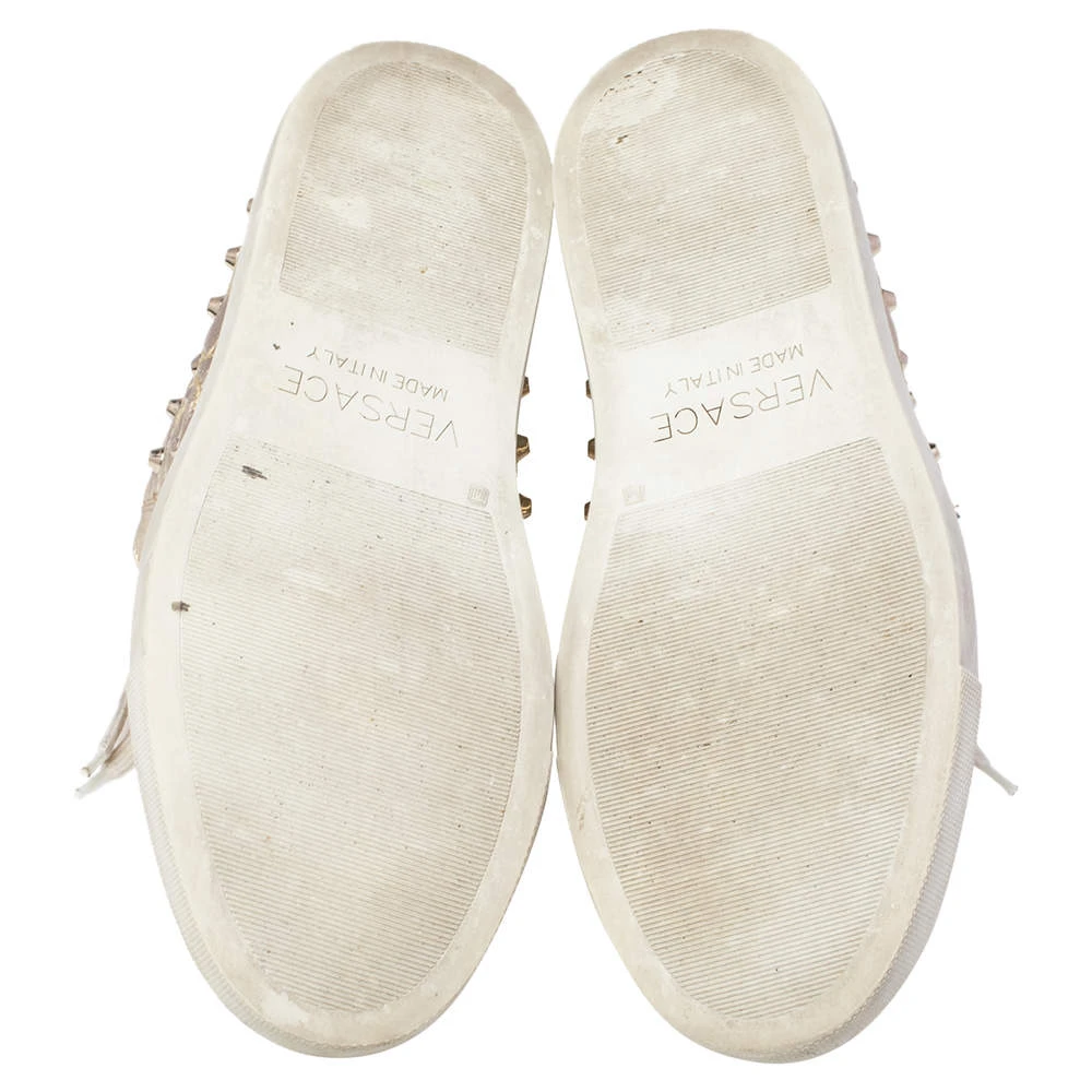 Brimming with fabulous details, these Versace sneakers are crafted from leather into a high-top silhouette and feature lace-up detailing at the front and gold-tone stud embellishments. Comfortable soles and trendy appeal make these sneakers a must-buy.