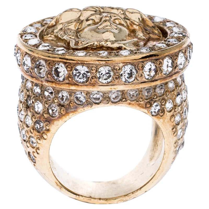 Featuring the Versace’s signature emblem, this Icon Medusa ring is a must-have in your coveted jewelry collection. The gold-tone creation is accented crystal embellishments that surround the Medusa head at the centre. An all-occasion wear, the ring will perfectly enhance your looks.