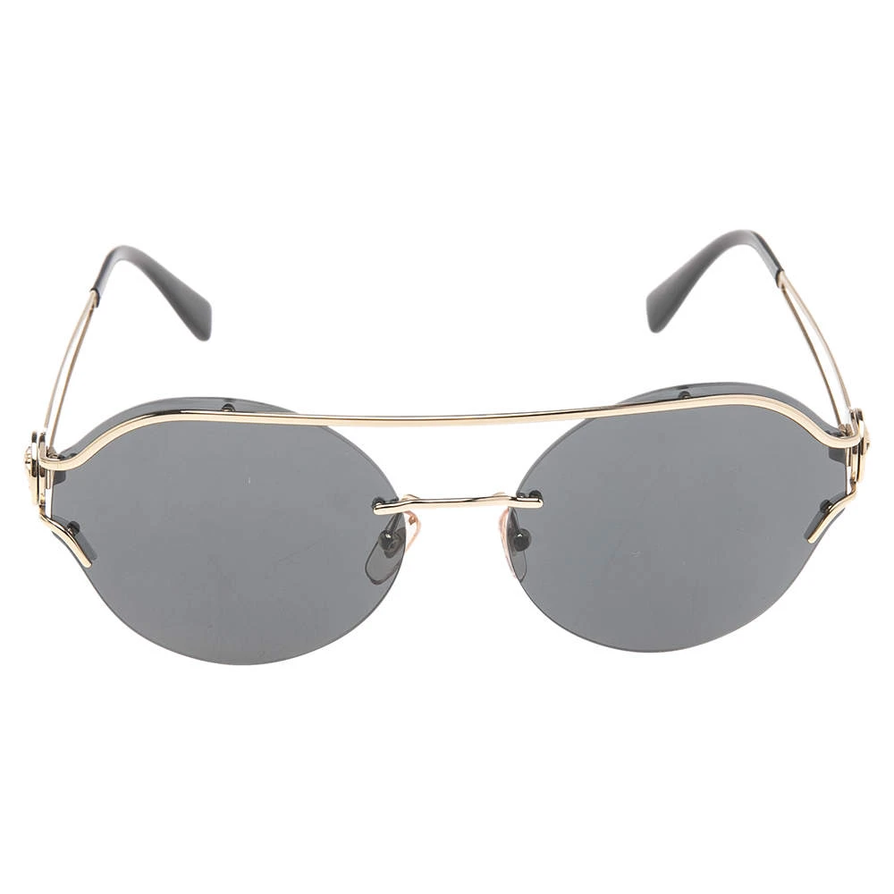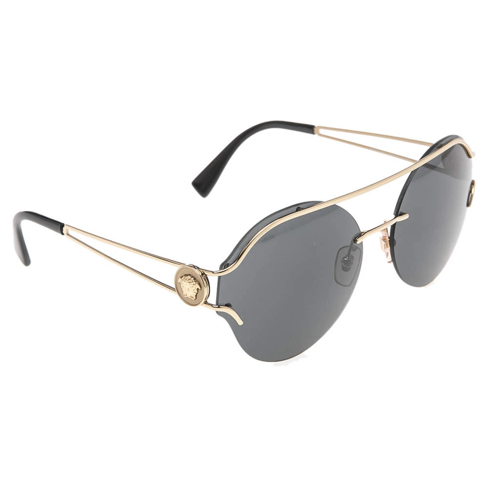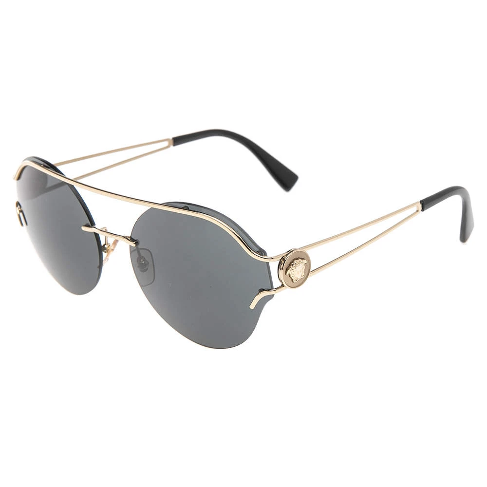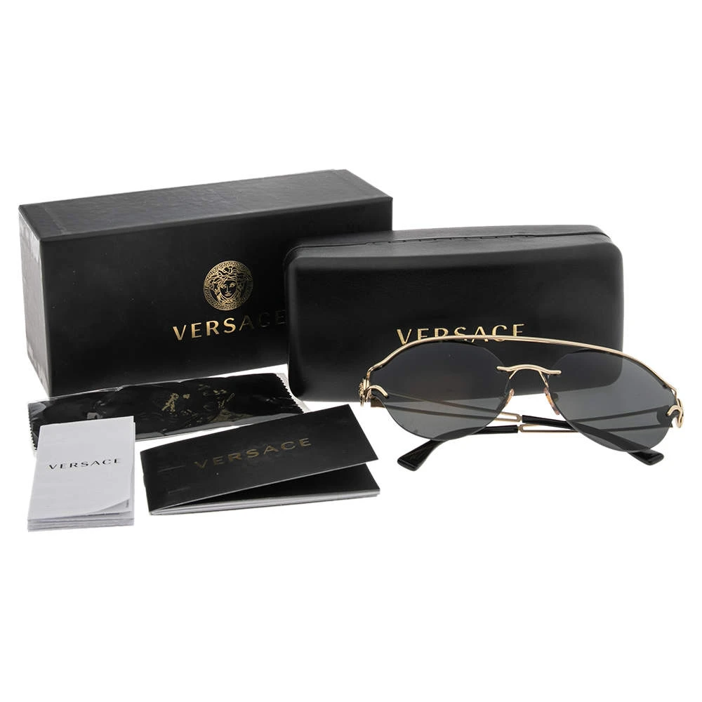 Enjoy those sunny days in full style while keeping your eyes safe with these Versace sunglasses. Designed in a simple silhouette with black lenses, the pair flaunts signature elements on the gold-tone temples.