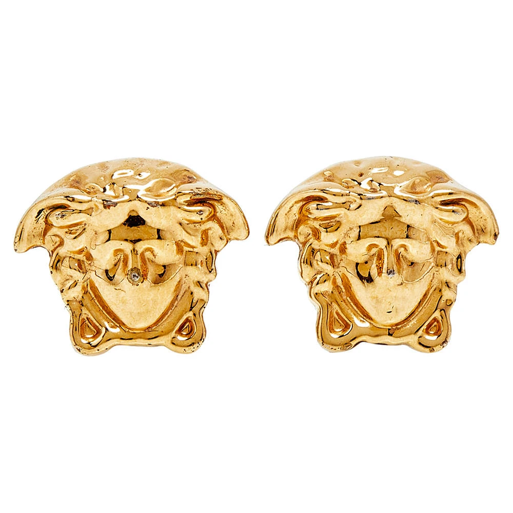 Elegantly crafted from gold-tone metal, this pair of stud earrings from Versace features their iconic Medusa motif. Beautifully designed, this pair is ideal to be worn on all kinds of occasions. This pair is secured by push-back closure.