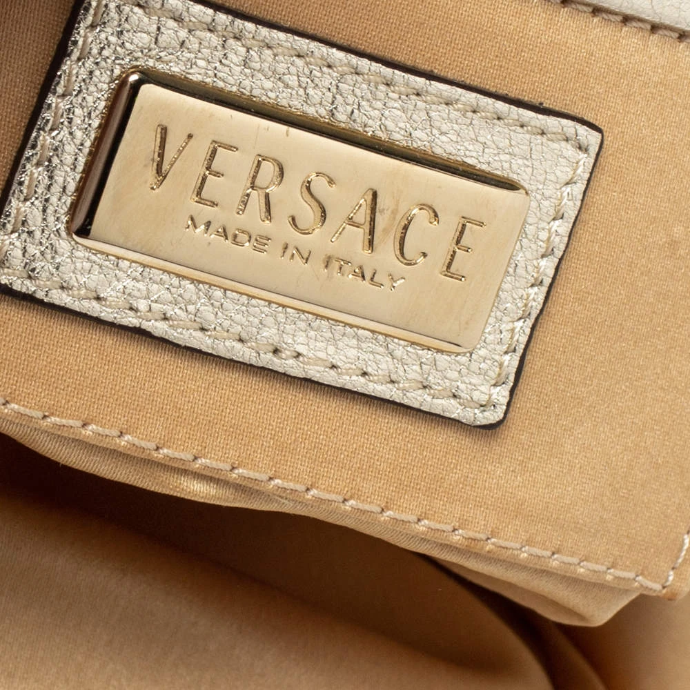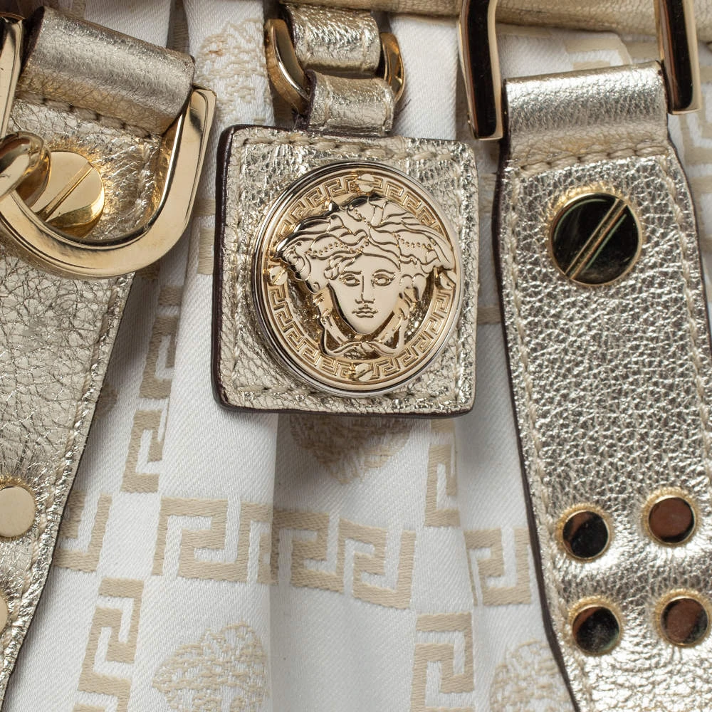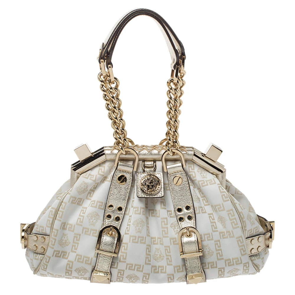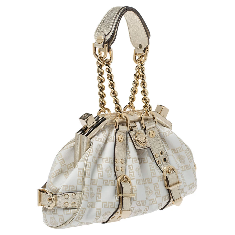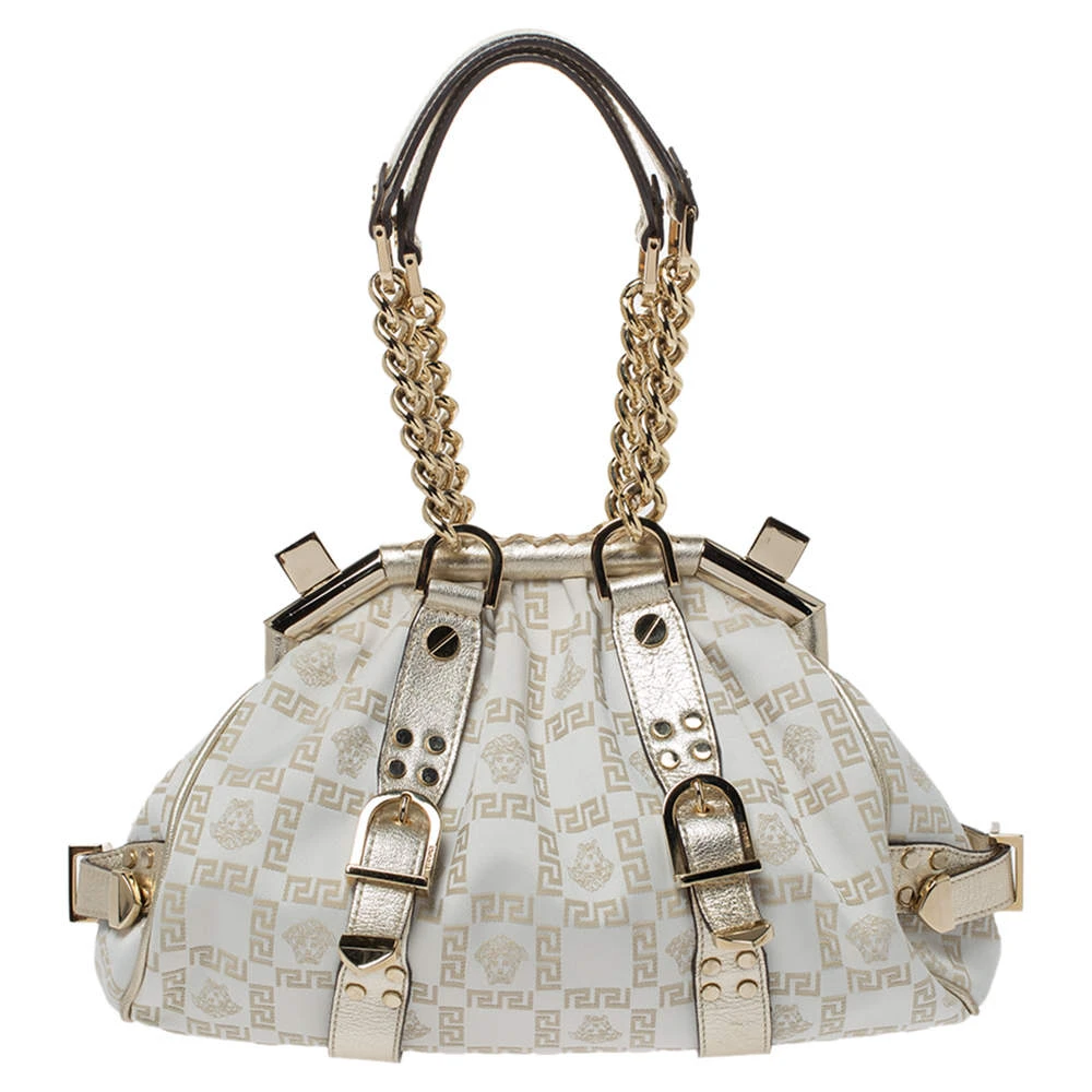 A gorgeous bag by Versace that is characterised by great craftsmanship and alluring prints all over. The satchel, made from signature fabric and leather, features two handles, the brand logo on the front and a spacious interior to house your necessities.