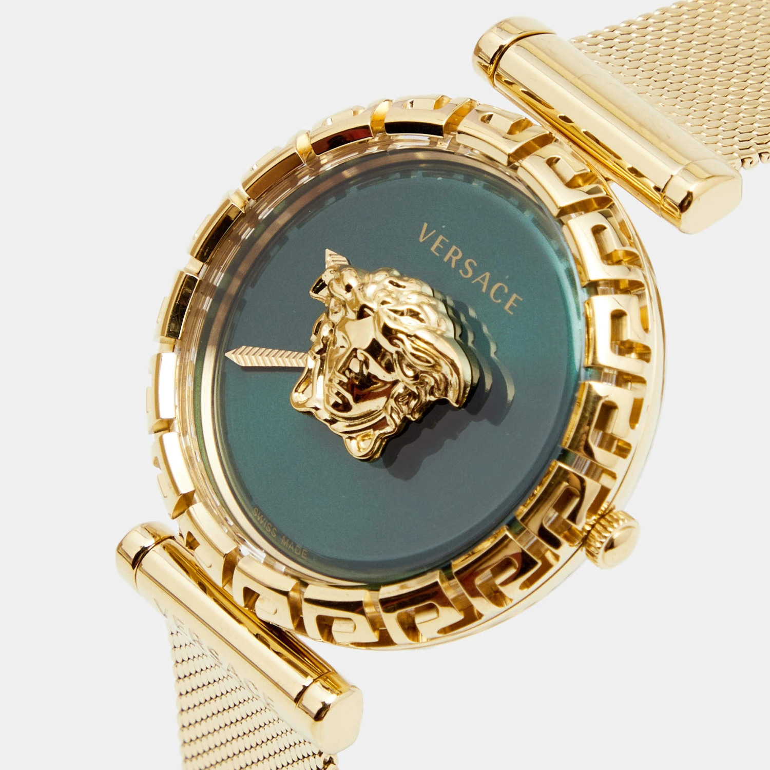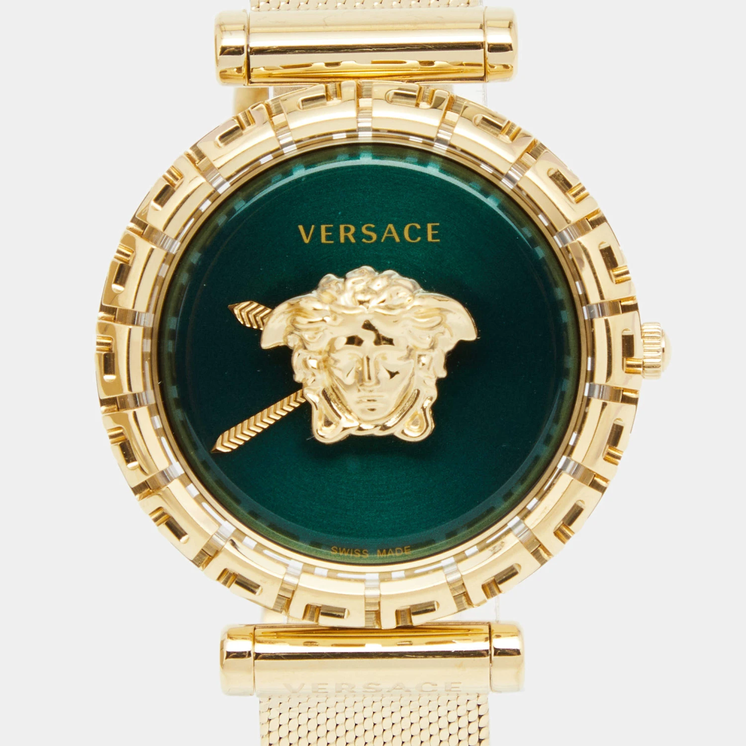 A beautiful watch from Versace that merges fine aesthetics with functionality. The perfectly-finished timepiece is made of gold-plated stainless steel and it has a stunning green dial highlighted by the Medusa logo. Let this creation keep you on time and also elevate your style.
