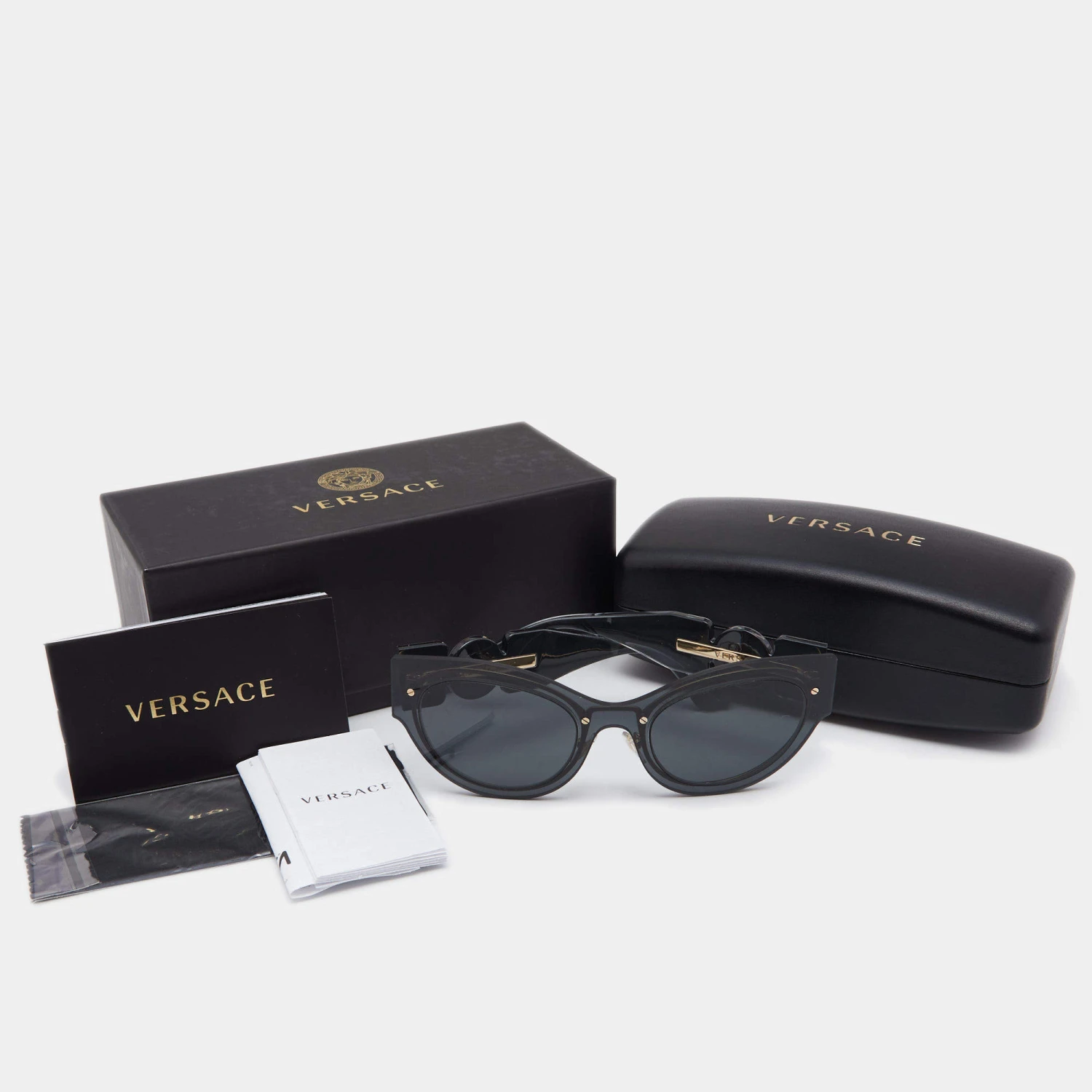 Luxury accessories are always a prize to own as they are so designed to last and also to make you look fashionable. This creation from Versace is a great example. It is fitted with quality lenses offering ample protection. The bold cat-eye style and gold-tone details on the temples make the sunglasses ready to be worn by you.
