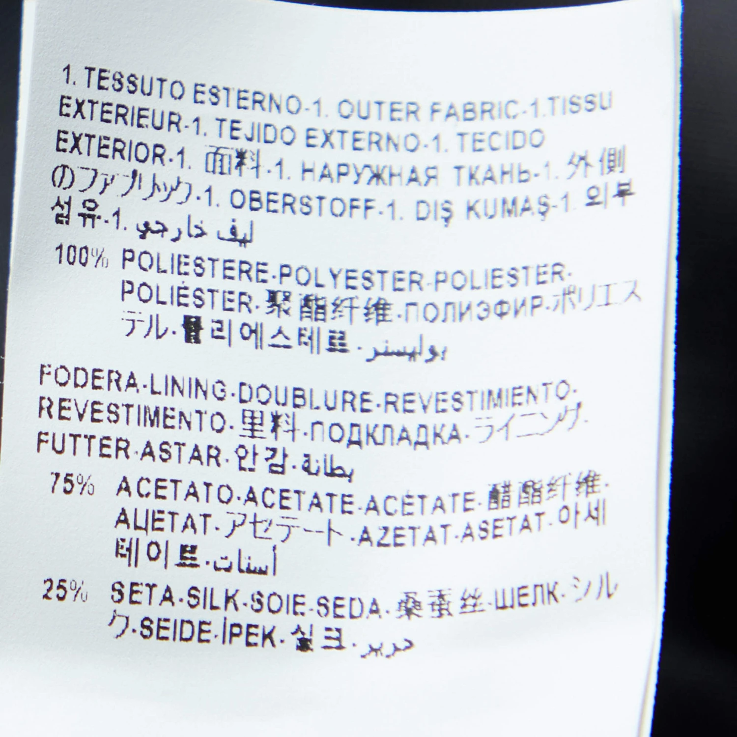 - Composition: Shell: 100% Polyester ; Lining: 75% Acetate, 25% Silk