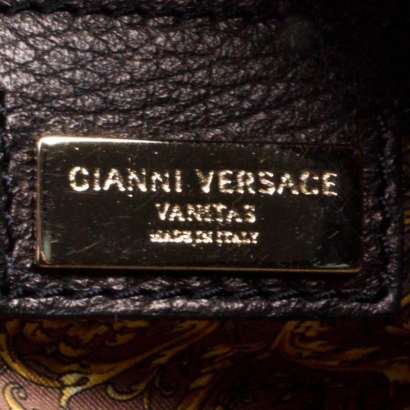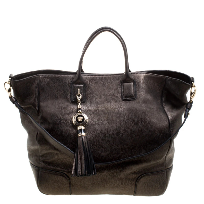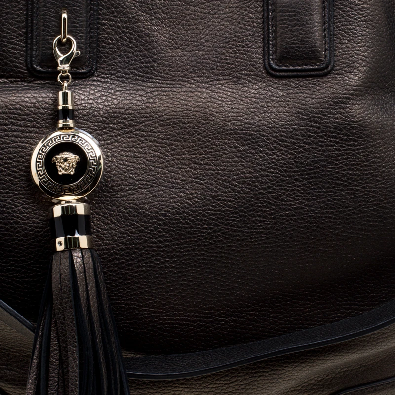 Swing with pride this gorgeous tote that comes crafted from leather and to endure through all your busy days. The bag is from Versace and it has a spacious satin interior, two top handles, and a detachable shoulder strap and charm.