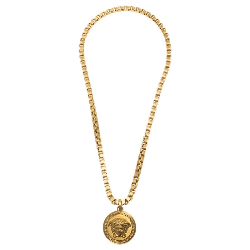 Crafted in Italy, this Verscae necklace features the iconic Medusa medallion with the brand lettering on its reverse. Handmade by the best Italian artisans, this necklace comes with a clasp fastening to hold it secure. The hypoallergenic metal is in gold tone and complements every look.