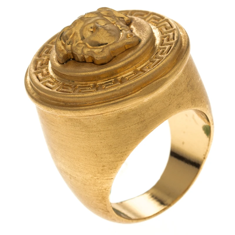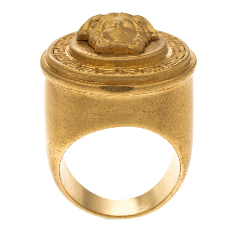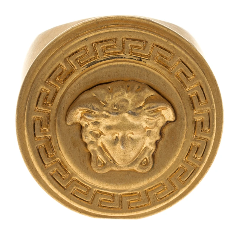 Featuring the Versace’s signature emblem, this Icon Medusa ring is a must-have in your coveted jewelry collection. The gold-tone creation is accented with embossed Medusa head and coin top detailing on the rims. An all occasion wear, the ring will perfectly enhance your luxurious contemporary take.