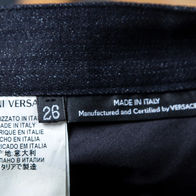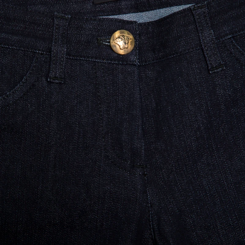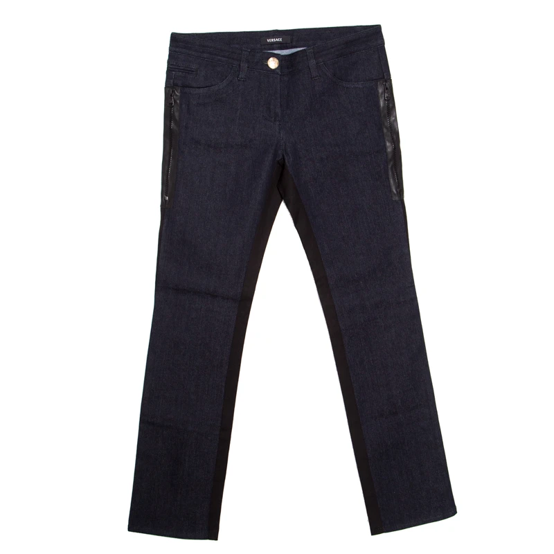 The denim panels near the waist and the zip details to the sides are the major highlights of these jeans from Versace. Crafted from a cotton blend with tapered legs and pockets, these indigo-hued jeans will look best with a casual tee and loafers.