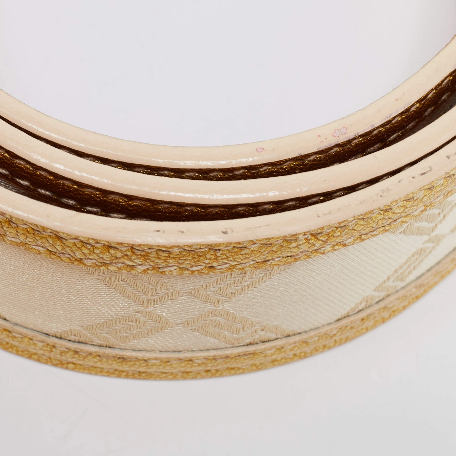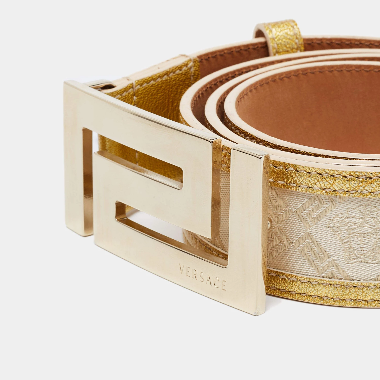 Accessorize right with this designer belt from Versace. The jacquard & patent leather strap is added with a gold-tone metal buckle and a single loop.
