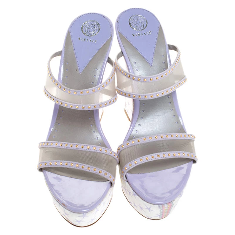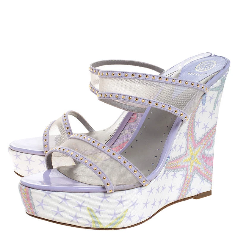 These sandals crafted from mesh and suede are worth the buy. Let these gorgeous wedge sandals speak for themselves in terms of style and comfort. Designed by Versace, they feature open toes, stud details and wedge heels.