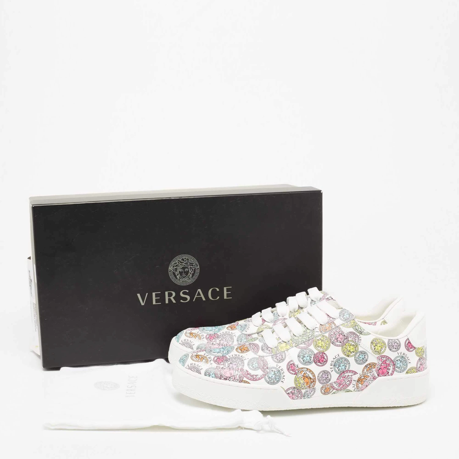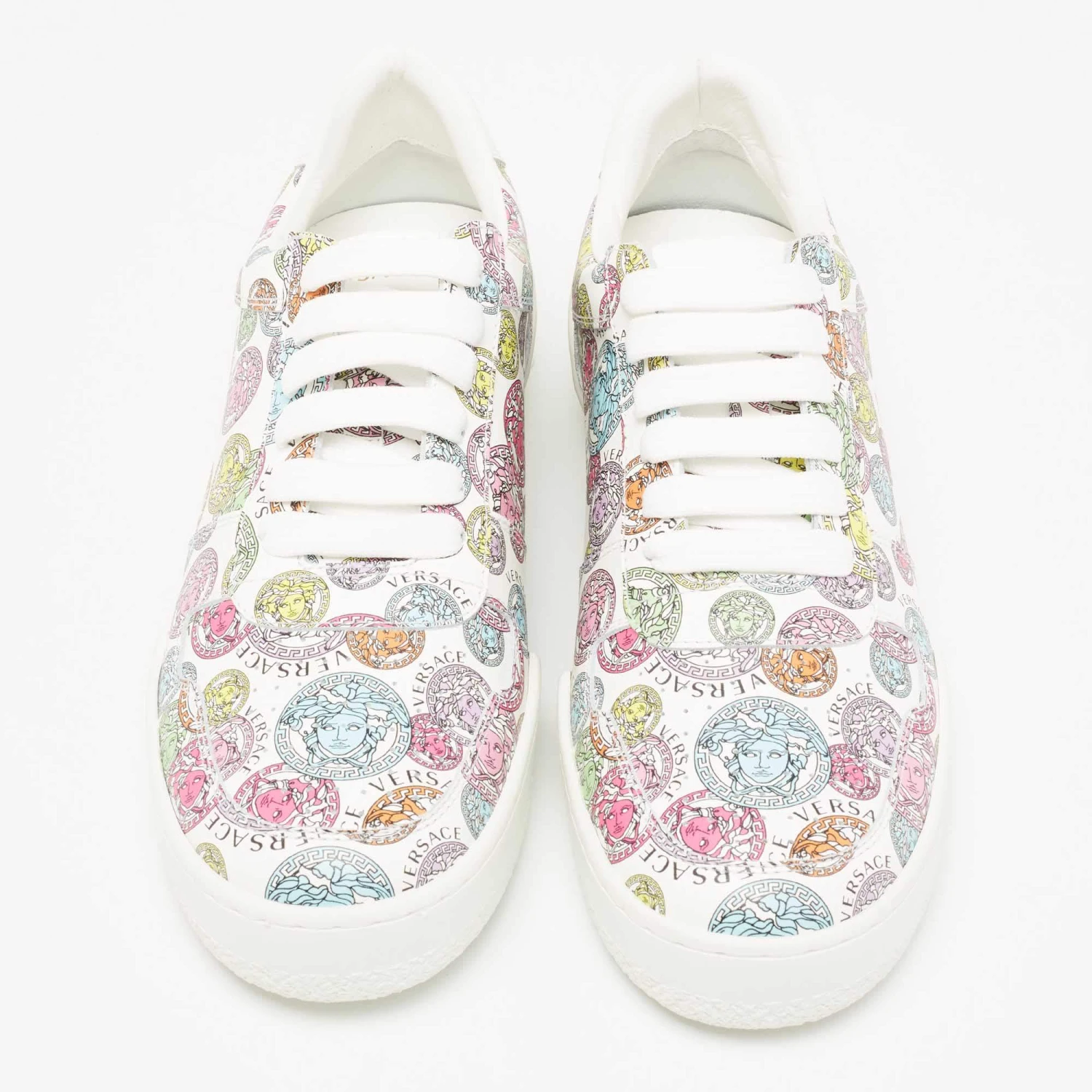 These Limited Edition sneakers from Versace are super sturdy and stylish. They are crafted from multicolored Ilus Medusa amplified print leather and showcase lace-up fastenings on their vamps. Flaunt your luxe styling sense with these classy sneakers.