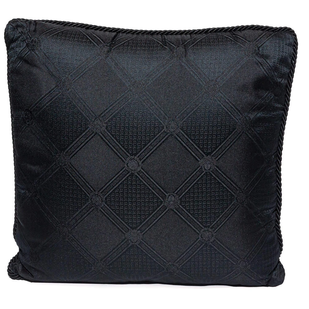 A soft, well-made cushion by Versace to add the luxe element to your home. The cushion in black has a square shape and the signature Medusa detail spread all over.